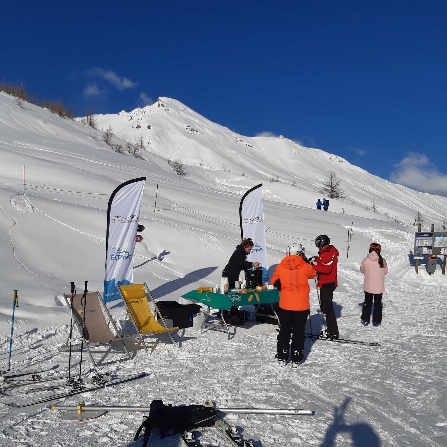 On a d'abord été accueilli au sommet de la station par un petit-dej offert et du bon son, puis c'est parti pour des HP de plus ou moins proximité copieusement enneigés.