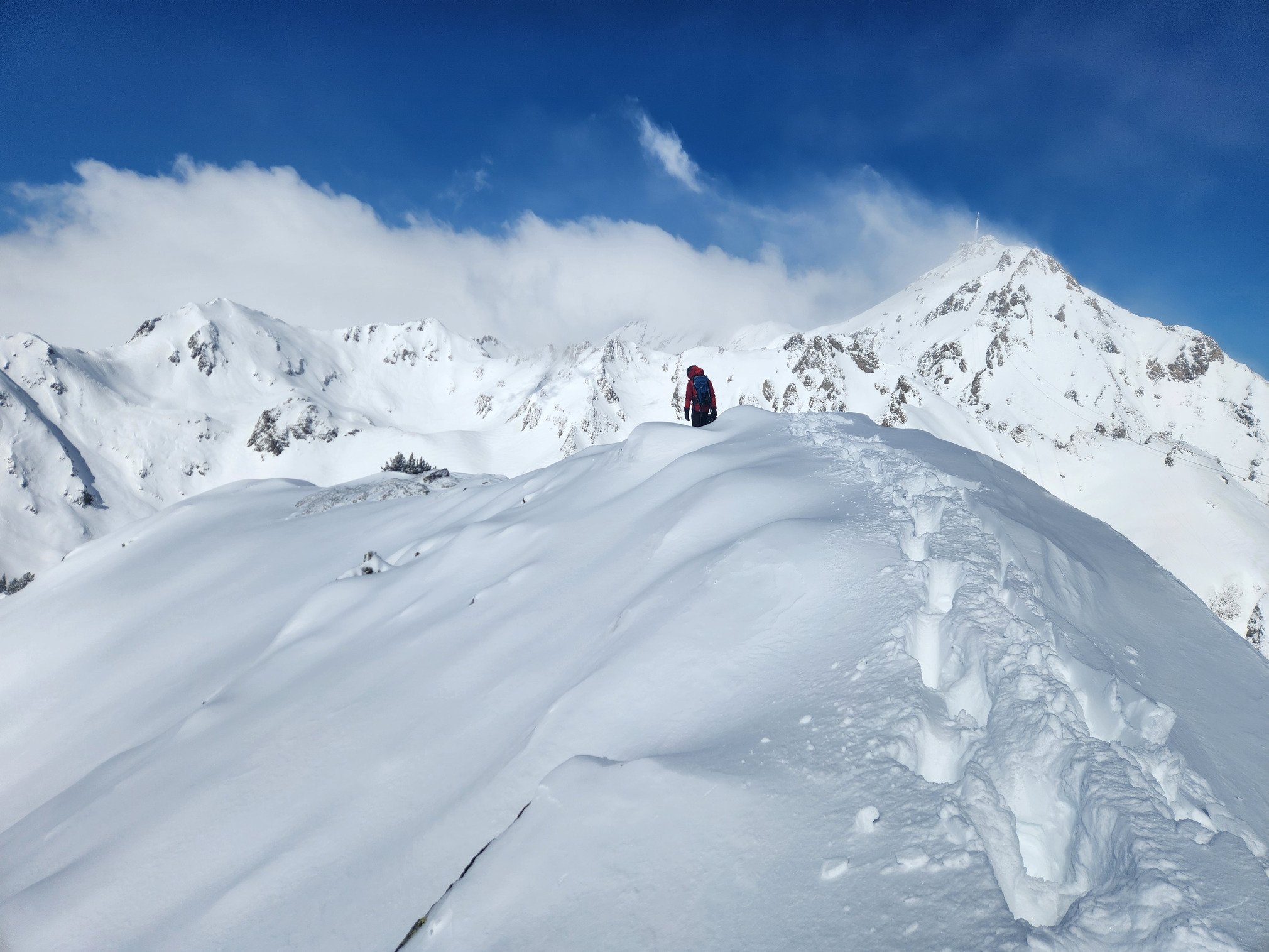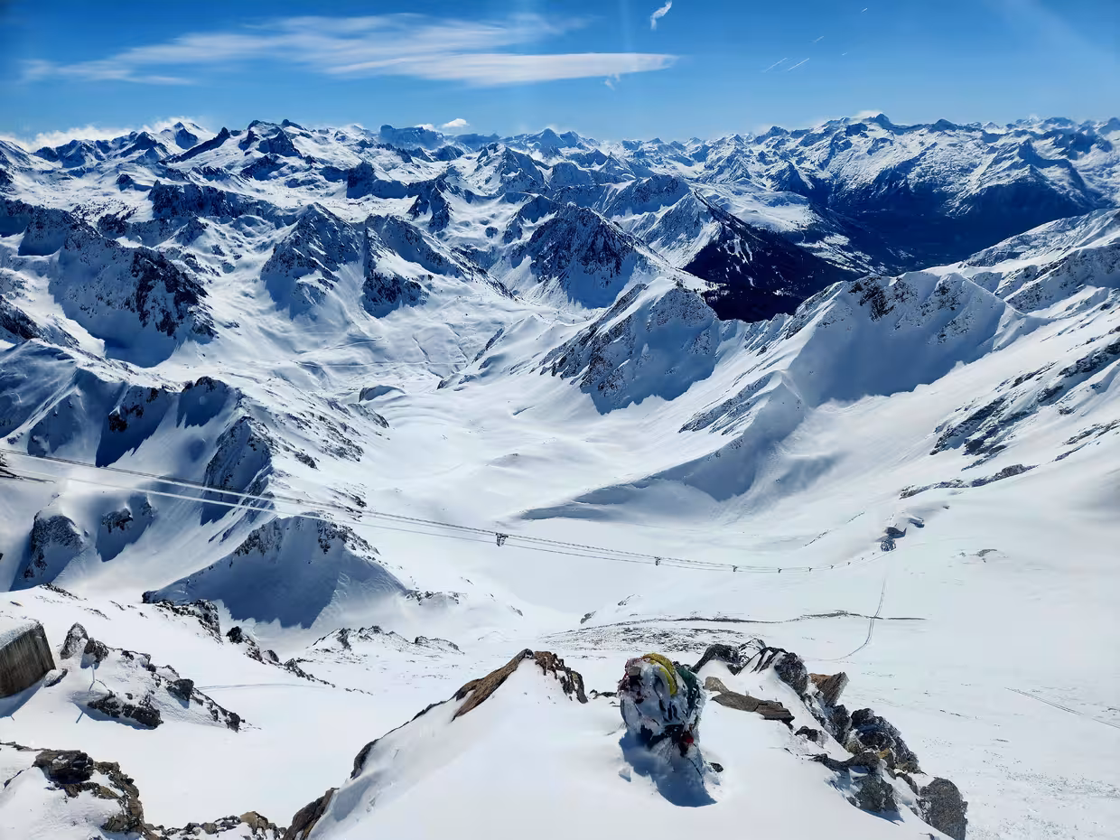 Une fois que le second tronçon ouvert, les bennes se sont allégées et à nous le paradis blanc. Une neige hétérogène sur la première et seconde pâle et puis full poudre tassée ou très légère jusqu'à 1800 m. Au final, beaucoup moins de vent qu'annoncé, seuls les crêtes et cols étaient venteux. Quelle ambiance au Pic aujourd'hui mais cela n'a pas été sans accidents: 2 avalanches en face Sud du Pic avec secours PGHM...