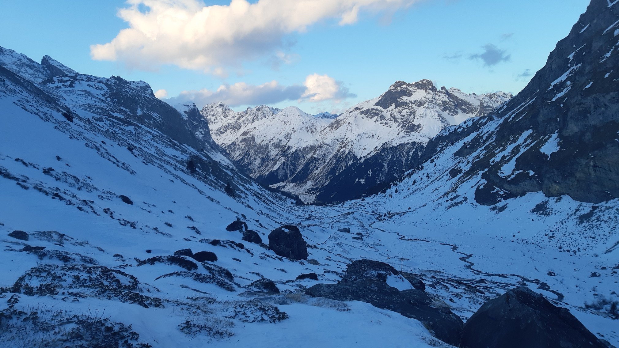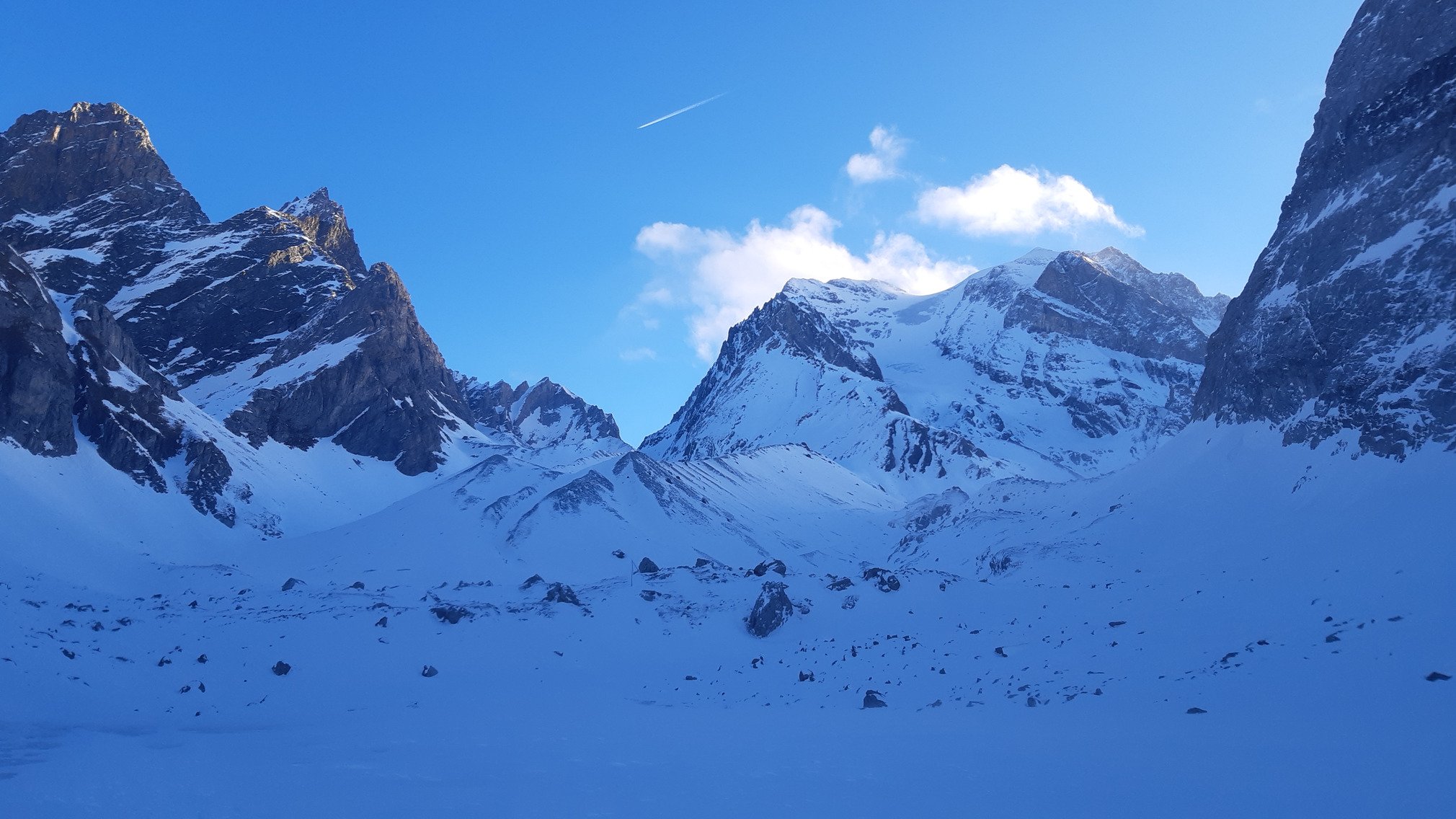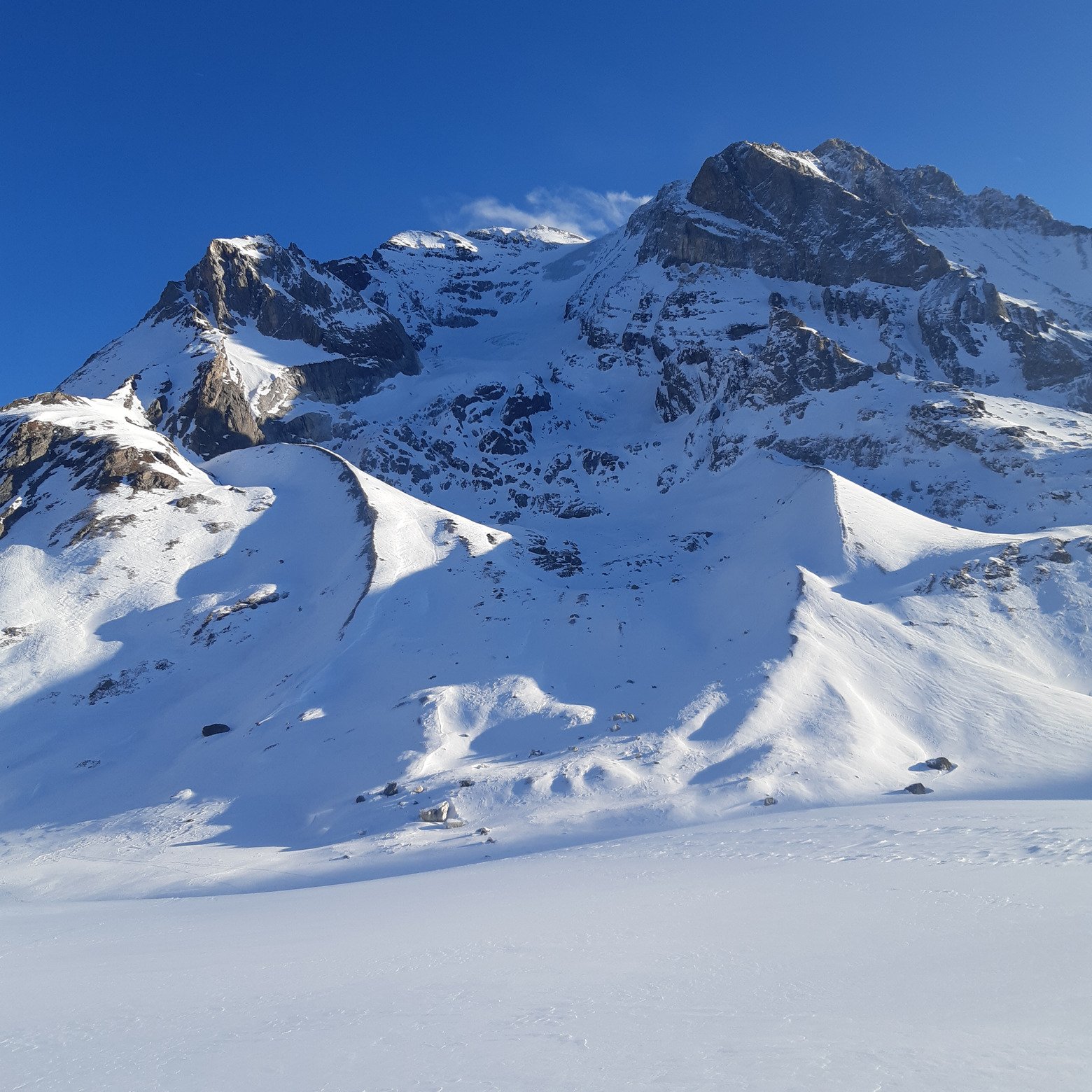 Descente d'abord sur des crêtes de coq puis sur de la neige béton où il faut être aussi débile que moi pour arriver à y trouver du plaisir.