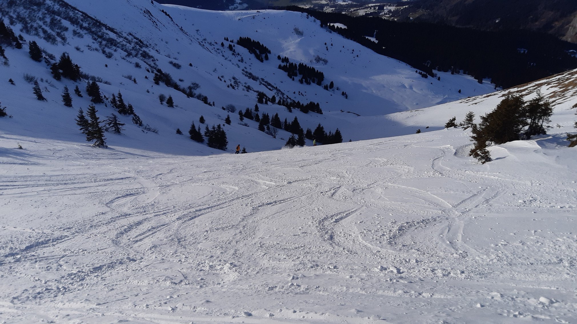 Le haut de la Combe Perret (qui est fermée) était très bon, plus bas c'était un peu croûté mais pas dérangeant avec 106 au patin.