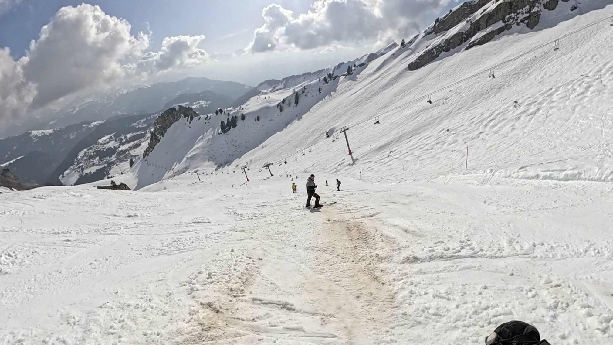 Neige de printemps sur le domaine, ça déraille vite côté Praz-de-Lys puis, en fin de matinée côté Sommand. Le dammage est très bon.