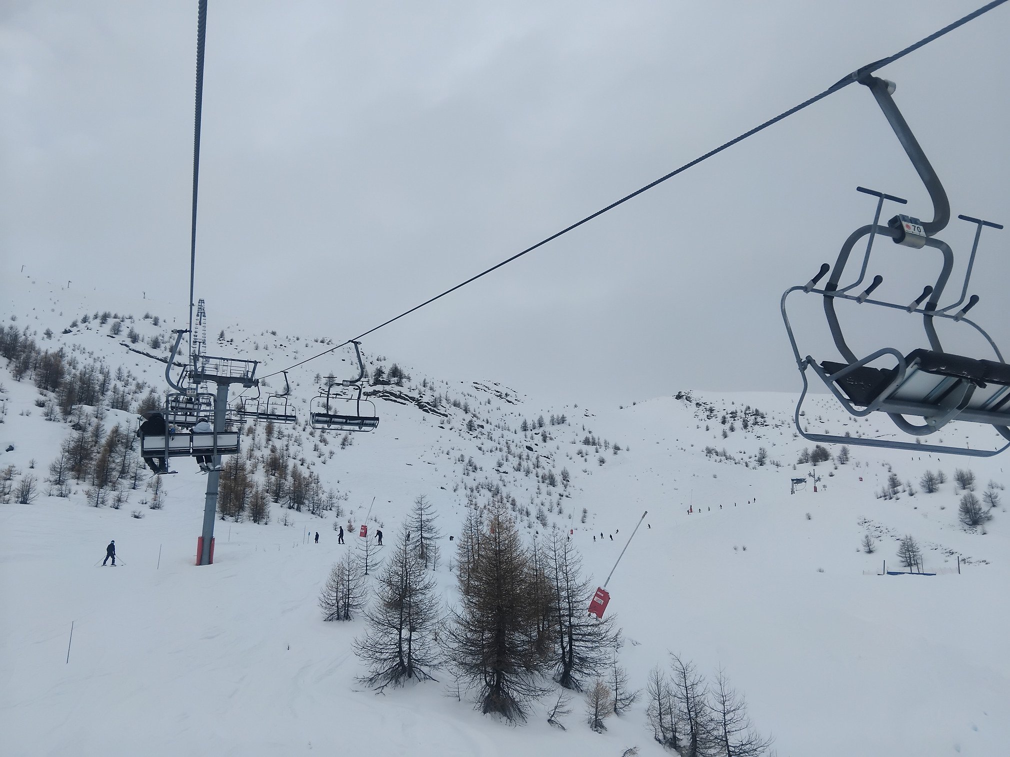 La neige se remet à tomber, il y en a un paquet d'annoncée, on croise les doigts pour la sation, l'enneigement fait peur, j'ai meme pas ouvert mes coins favoris du rocher noir.