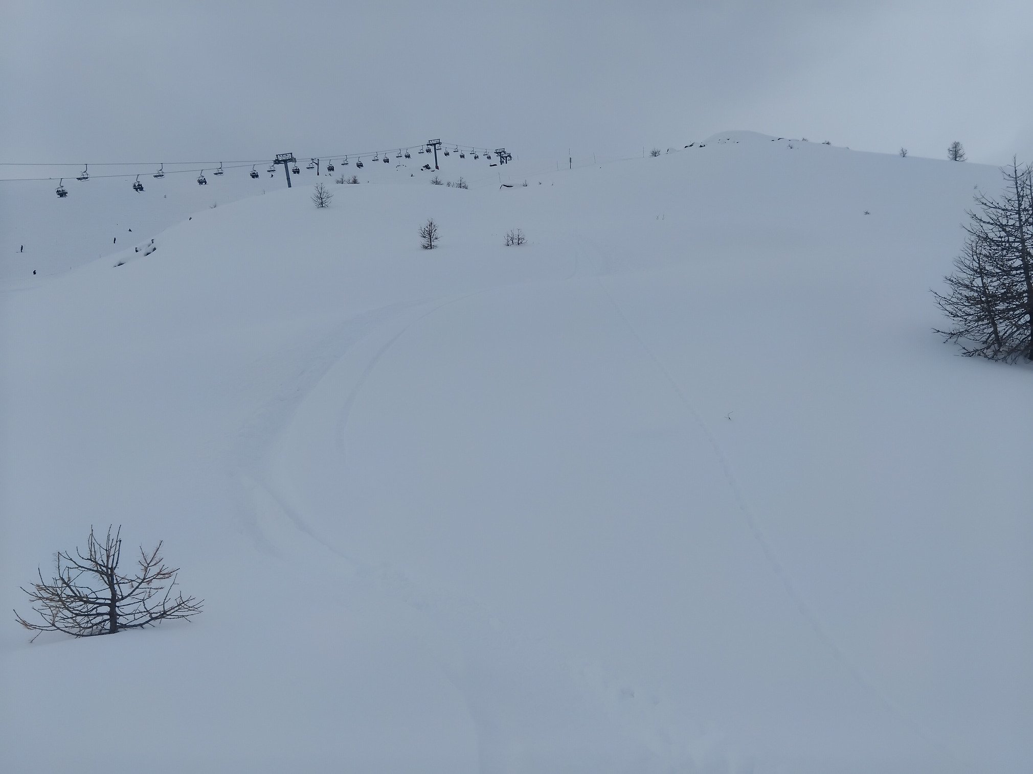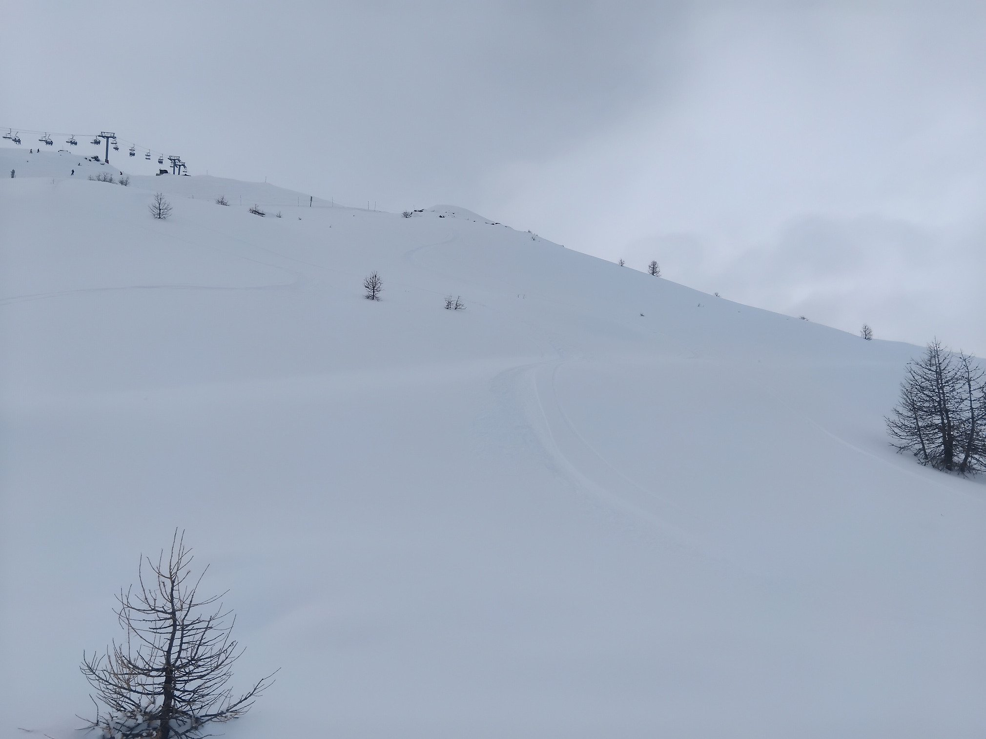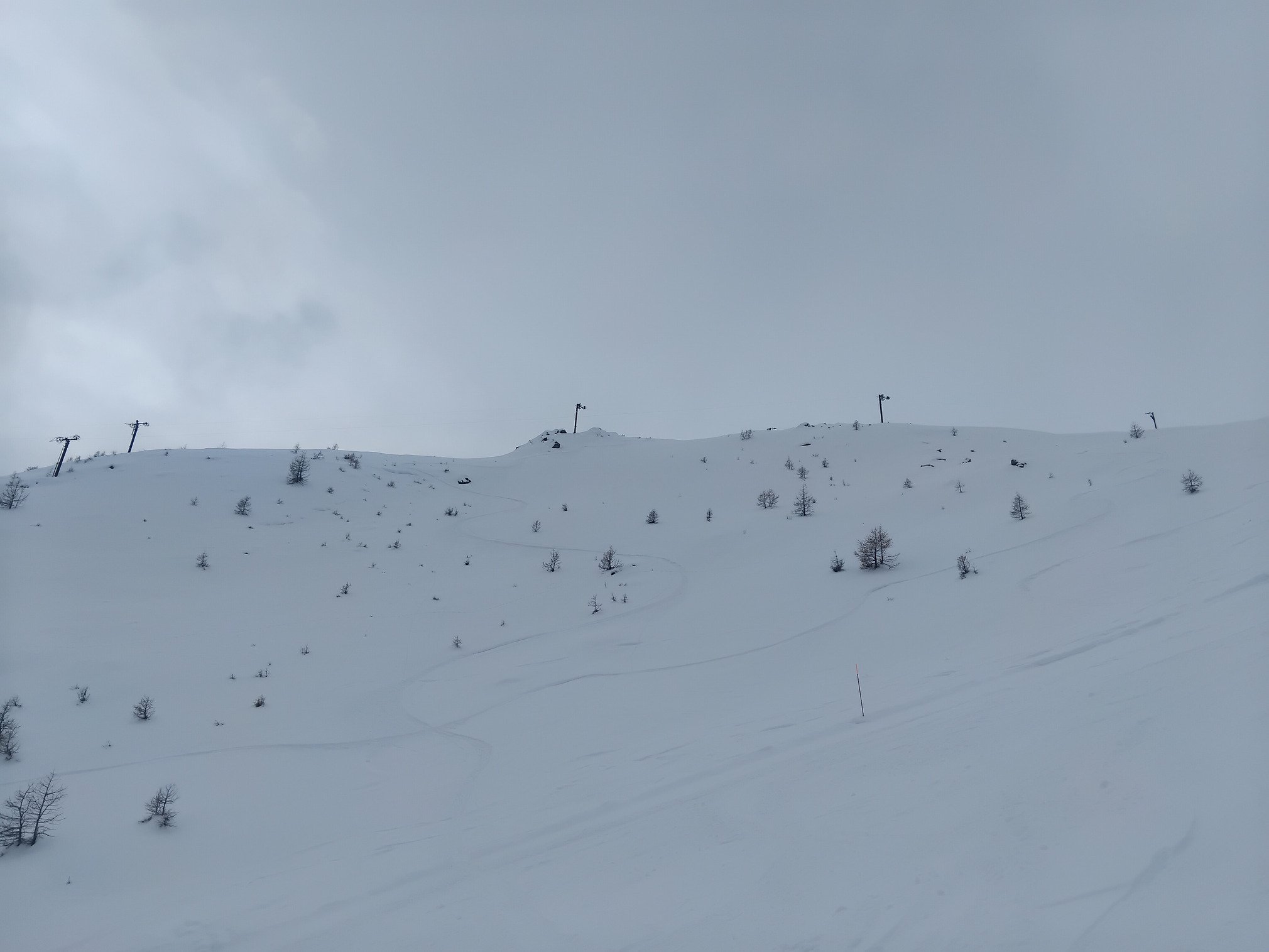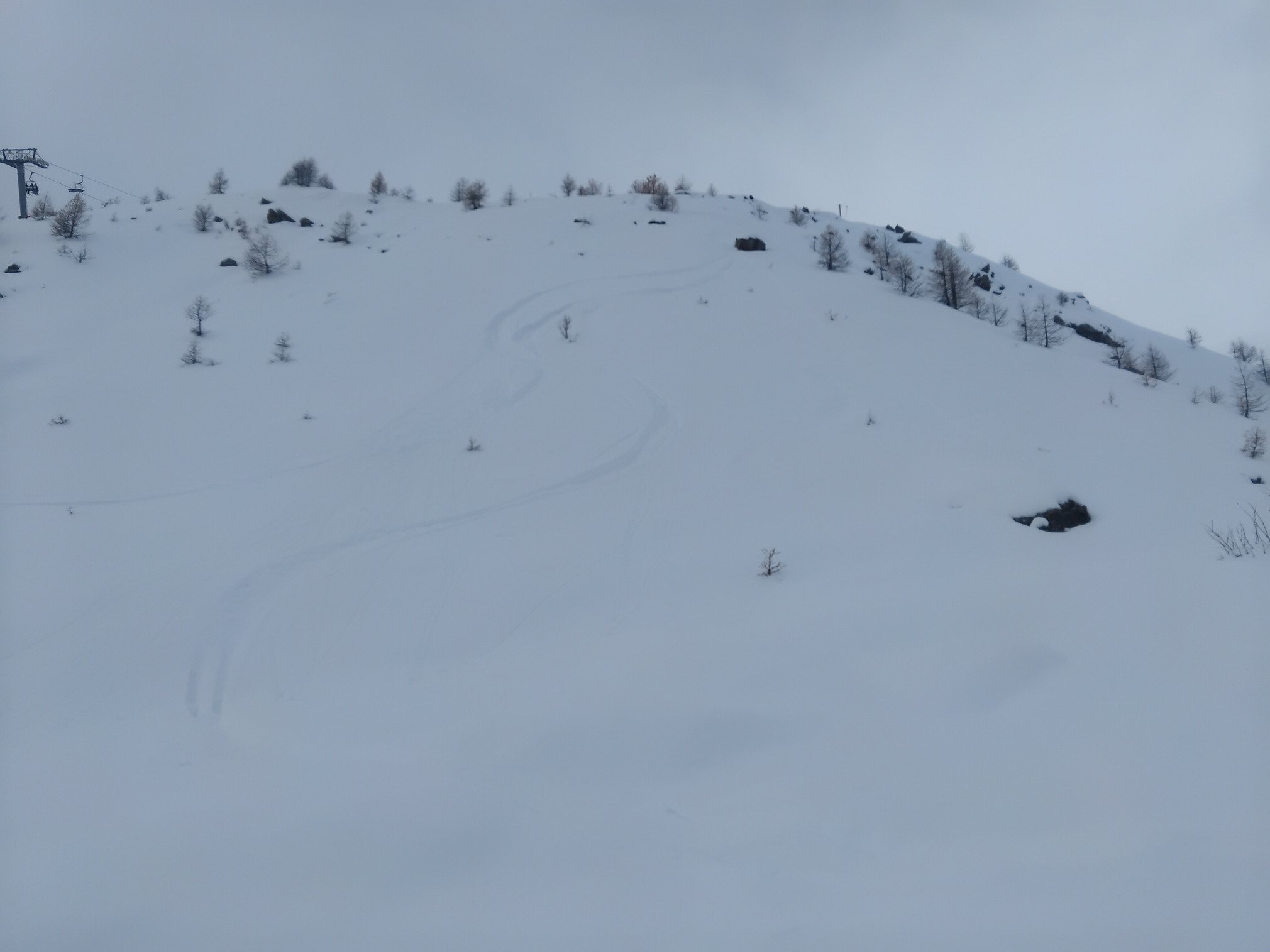 Super bon a tracer, mais les cailloux sont pas loins, faut connaitre. Toute la station se rue sur la poudreuse, malheureusement quelques genoux y resteront... la rouge à été damée une fois mais il a reneigé dessus avec quelques passages de skieurs, débutants s'abstenir!