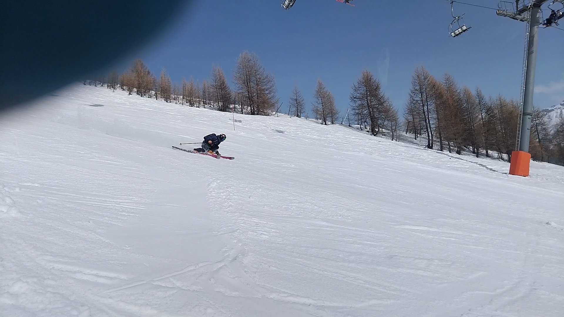 Il fait beau aujourd'hui, le sable est bien moins visible que les jours précédents, et le ciel moins voilé. Les pistes sont super bien préparées le matin, on échange un peu le matos pour faire des tests, et on en profite pour carver fantastiquement parce que, comme tout le monde le sait, #lecarvingcestfantastique .