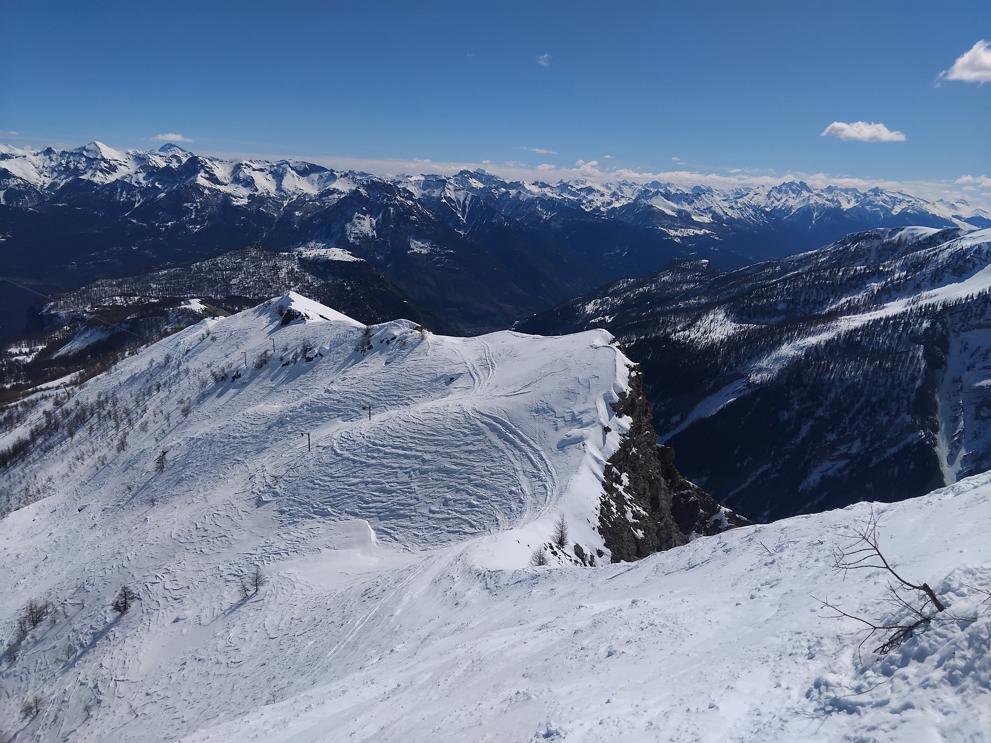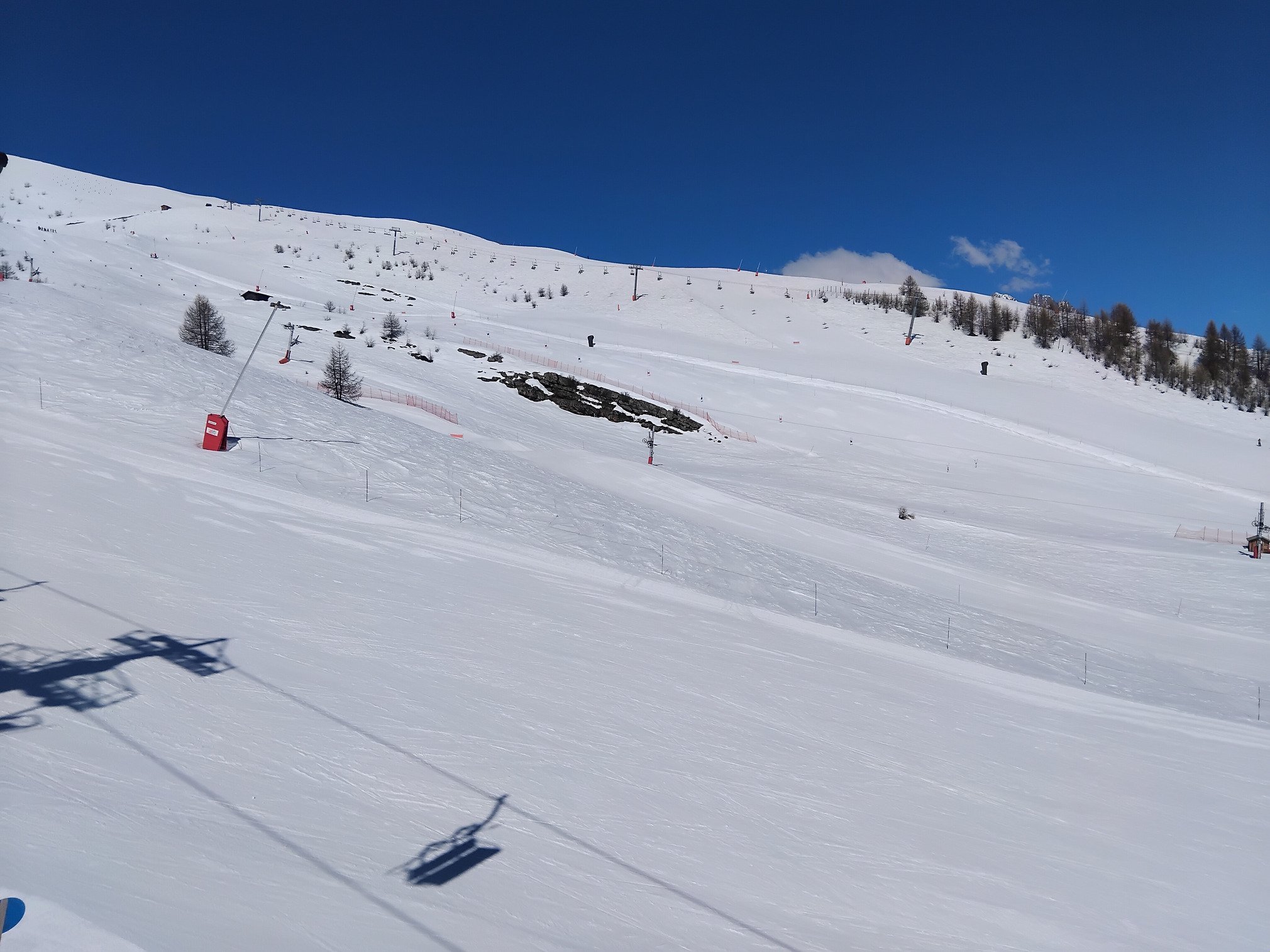 Plusieurs tracés de slalom et de géant sont présents sur le haut du domaine. Les pistes sont super bonnes avec le froid des nuits, mais les hors pistes sont compliqués à skier, le vent à tout ravagé, c'est cartonné et crouté avec quelques accumulations par endroit dans les creux.