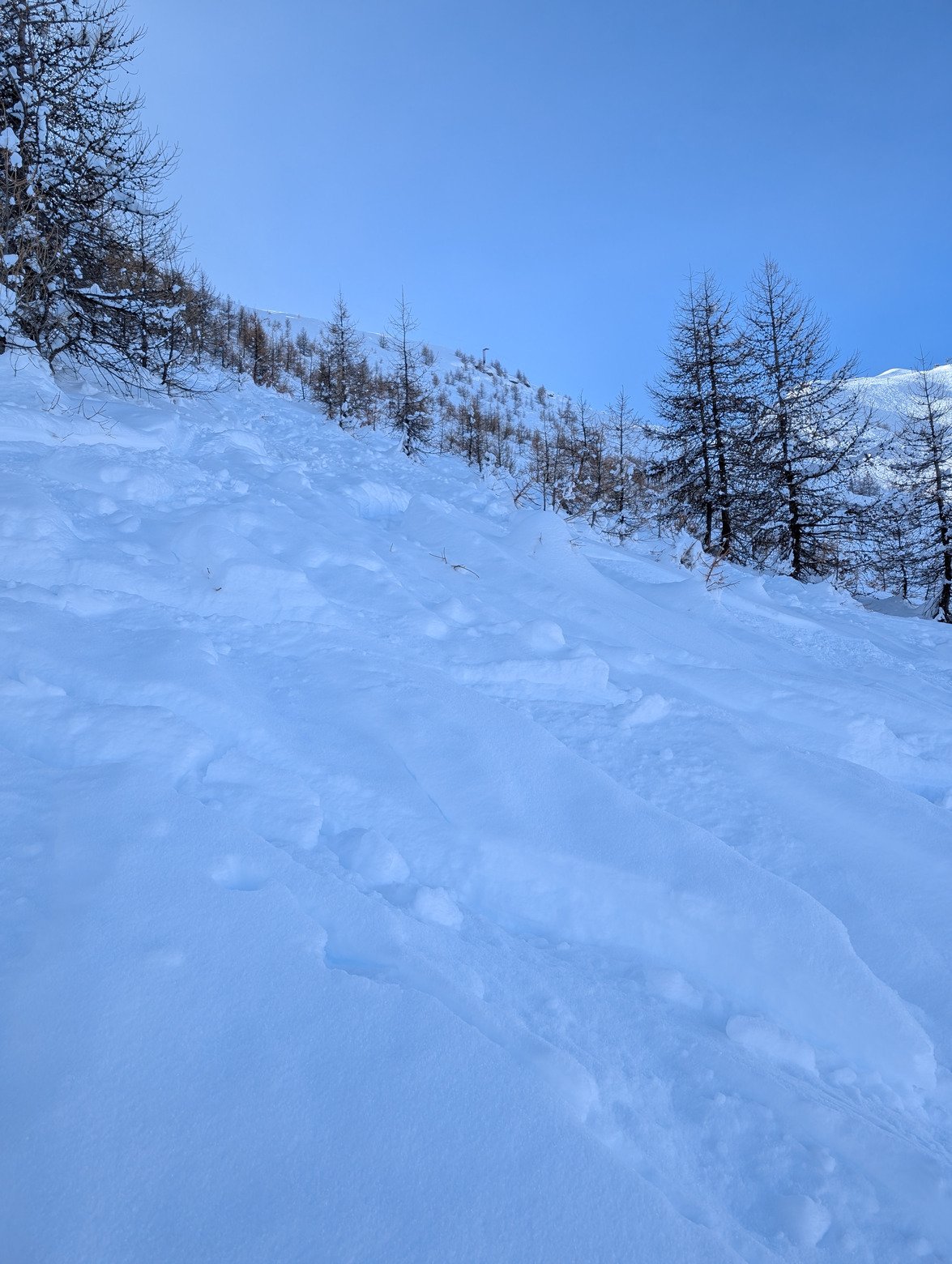 Hors piste c'est tout tracé, le festival de la trafole. On peut trouver 1 ou deux virages poudreux sous rocher noir.