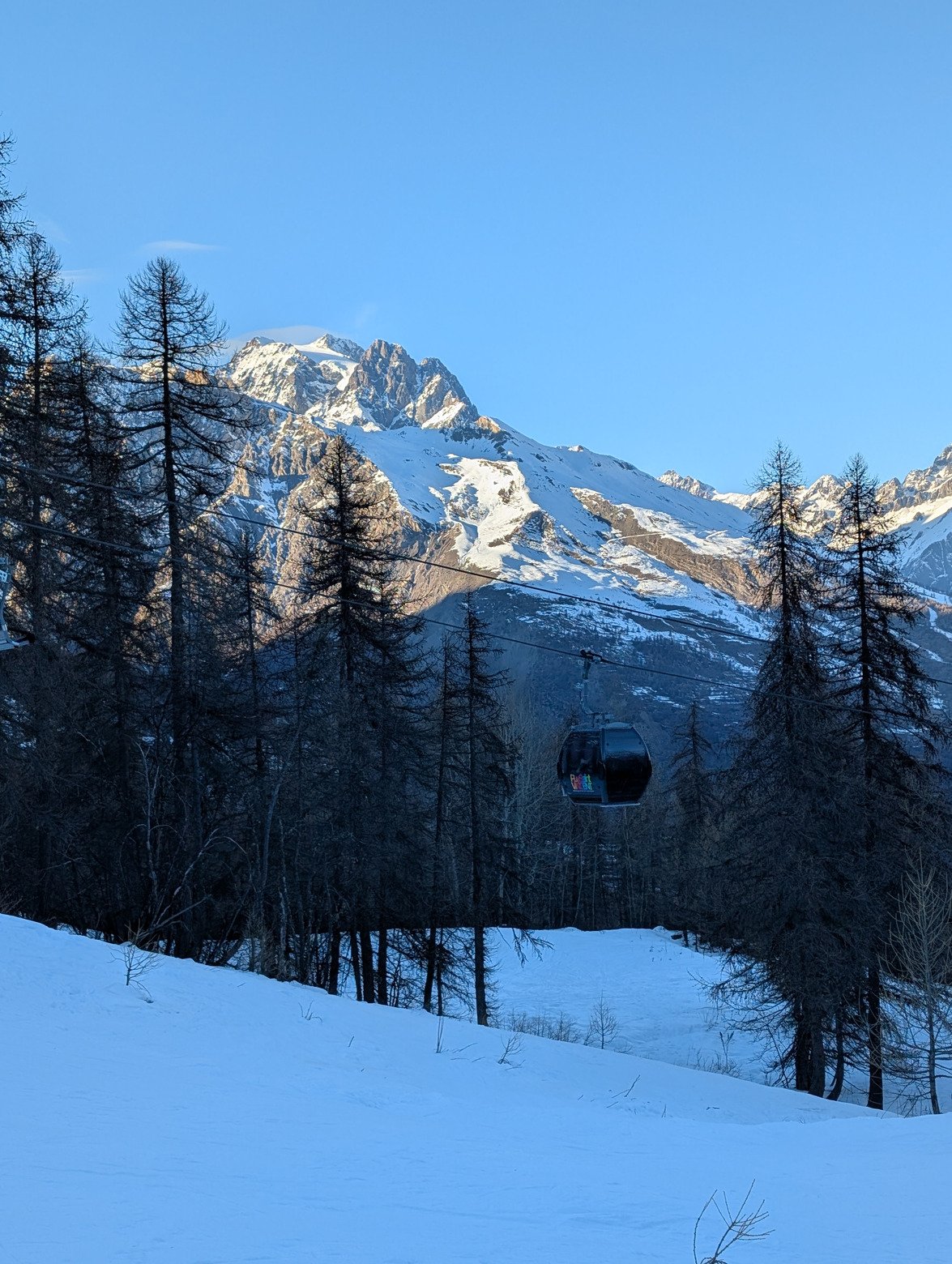 La neige sur rocher noir est toujours très correcte, sur pendine le transport de neige fait des petits dépots bien agréables, comblant les creux entre des bosses plus dures. Ça se skir bien.