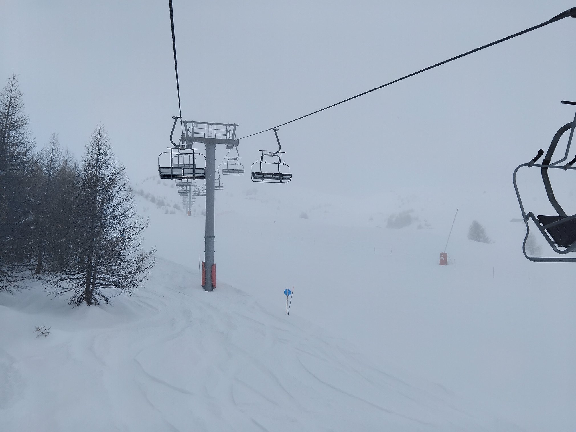 Ce matin tout est baché, les pistes sont nickel, et il reste un peu de neige à tracer en altitude. 10 ou 15cm sur fond dur, notamment sur la face du rocher noir qui n'a pas encore été tracée.