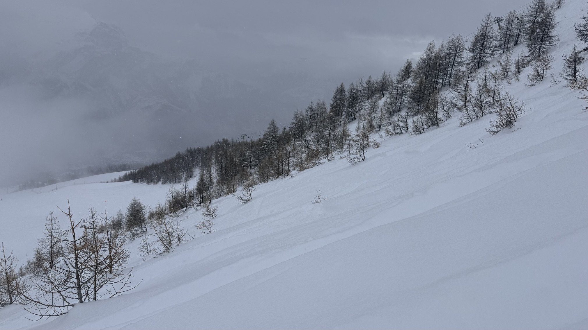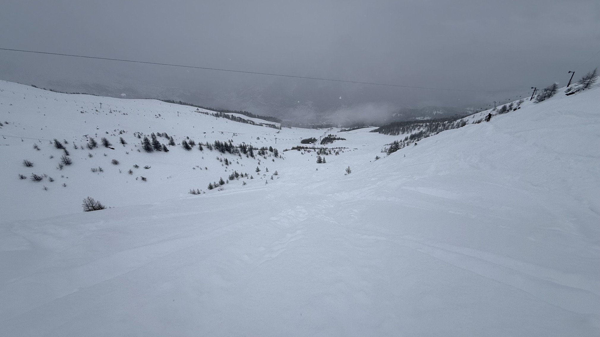 La visibilité était moyenne à mauvaise, alors j’ai skié tranquillement, il restait quelques lignes à faire en jouant un peu avec la trafolle.