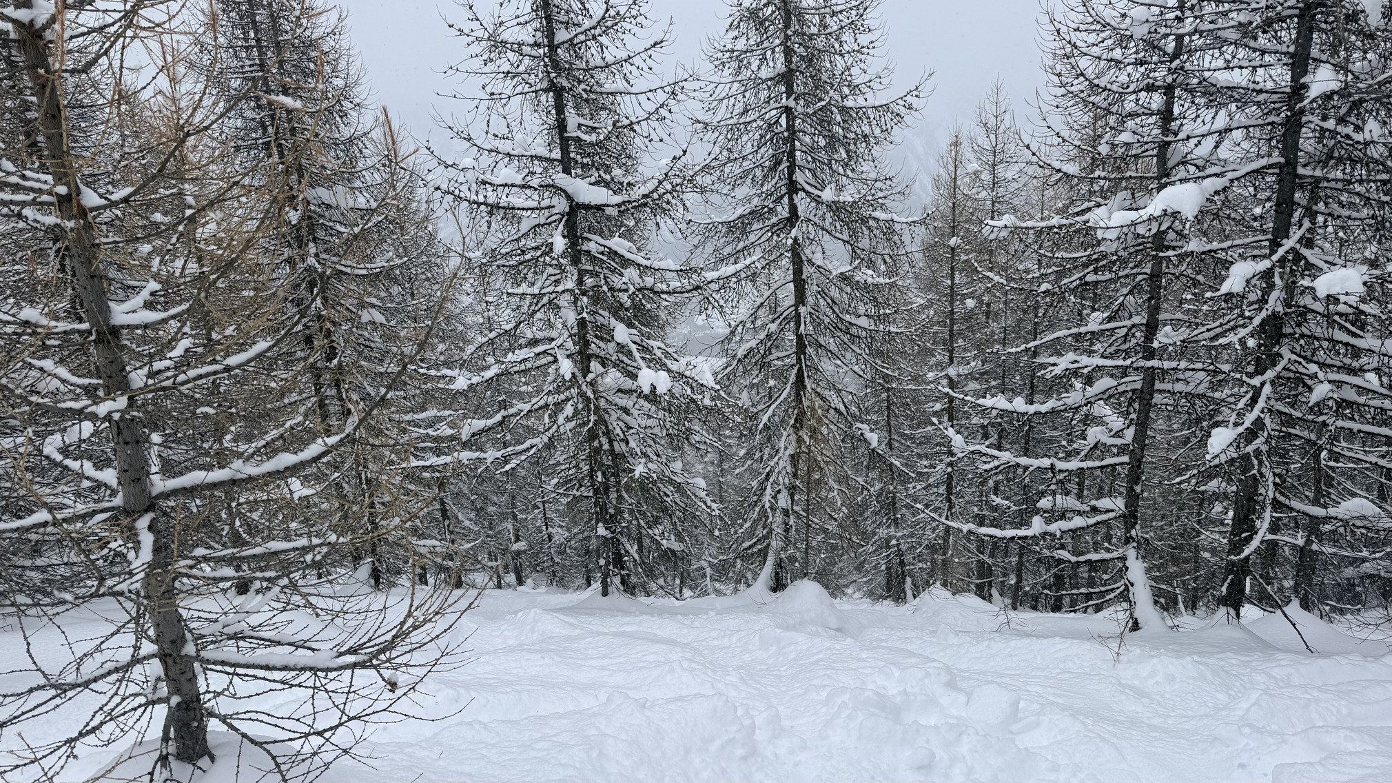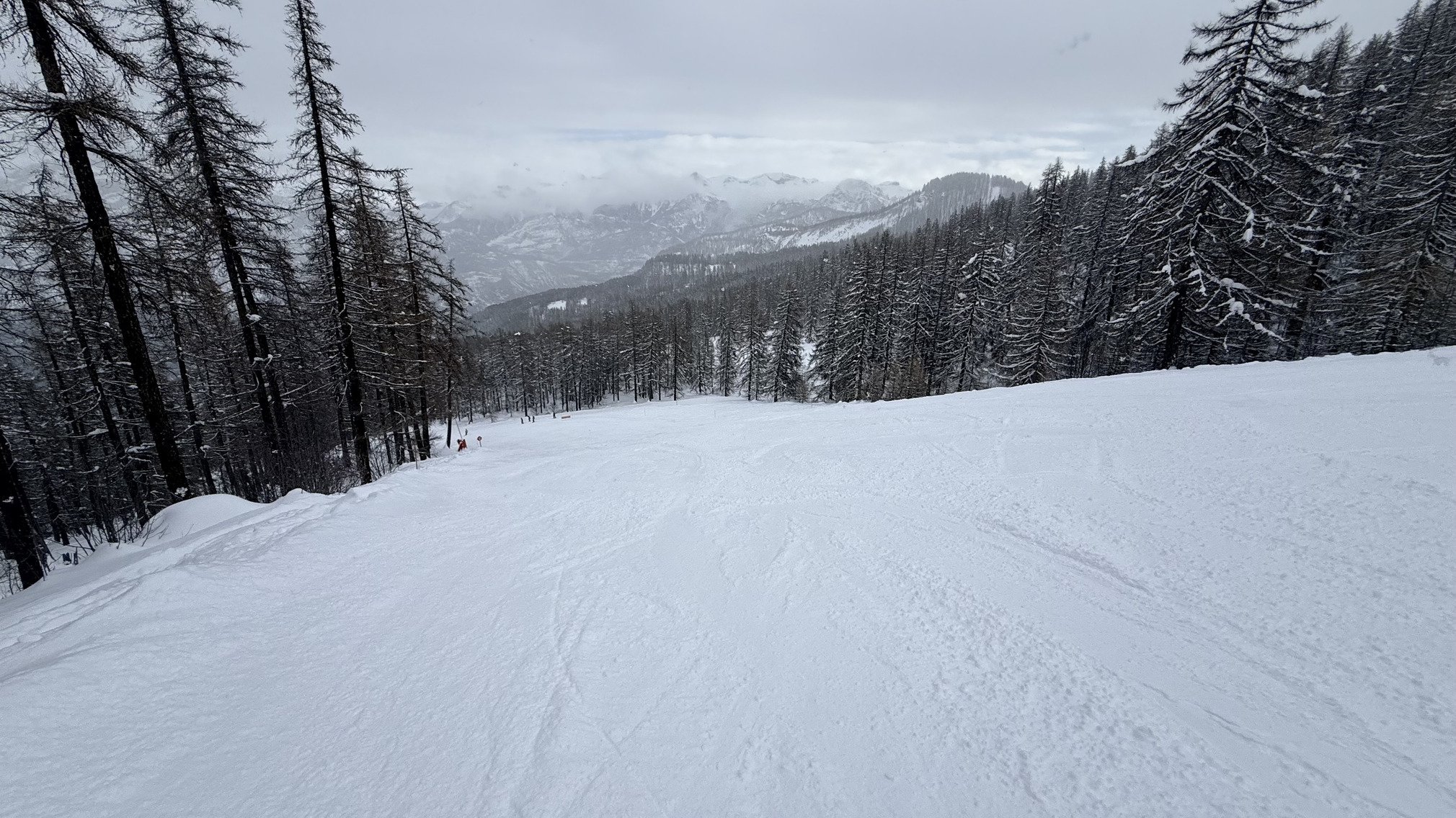 Sur les hauteurs, il y avait de la profondeur, mais c’était globalement déjà un peu lourd sur les sommets et en forêt, moyen en dessous. Il ne fait pas assez froid et l’humidité a fait son œuvre. Ne vous attendez plus à de la neige froide et légère.