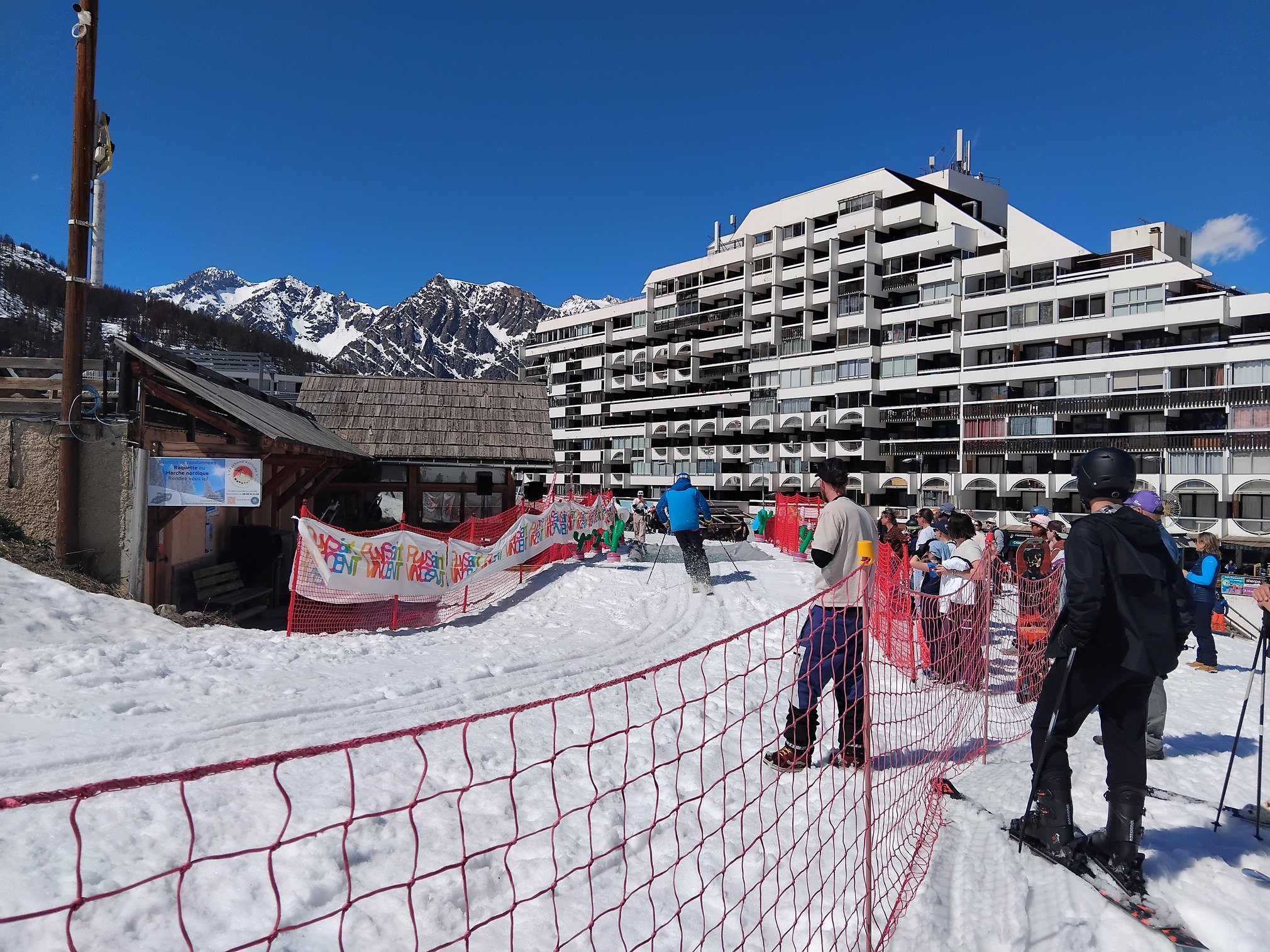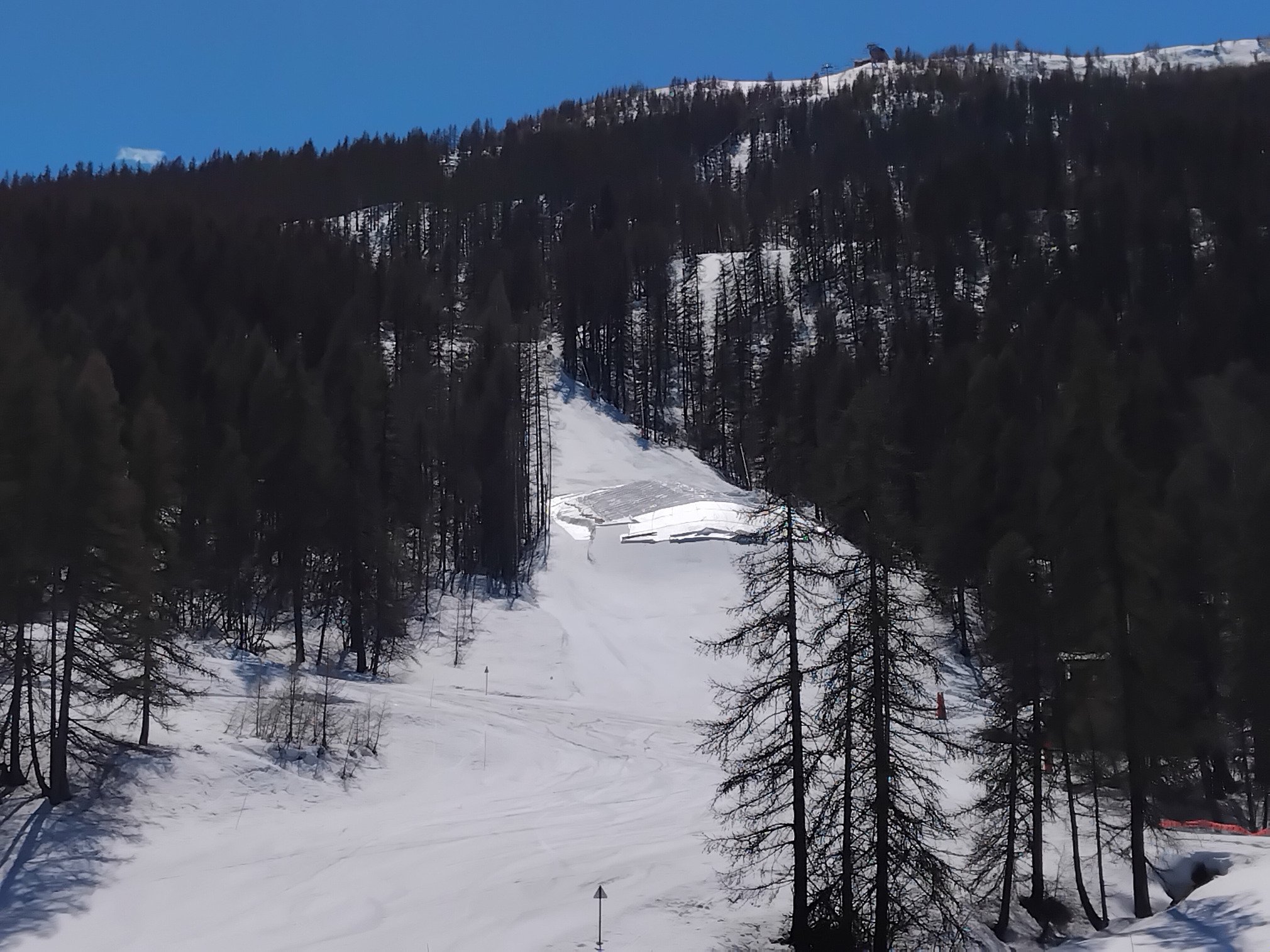Je suis monté à mi-journee pour profiter des 2 derniers jours d'ouverture, un waterslide à été shapé sur le front de neige de 1600, des side hits sont vus le jour un peu partout, et les t shirts sont de sortie sur les pistes aujourd'hui.