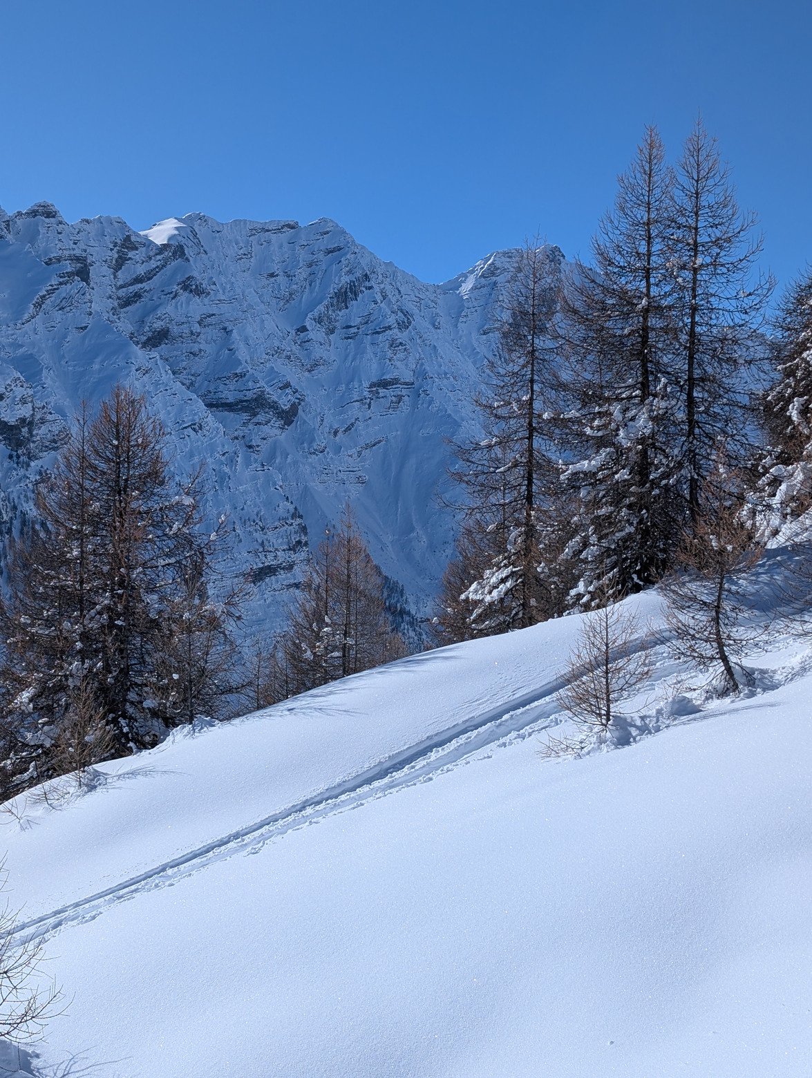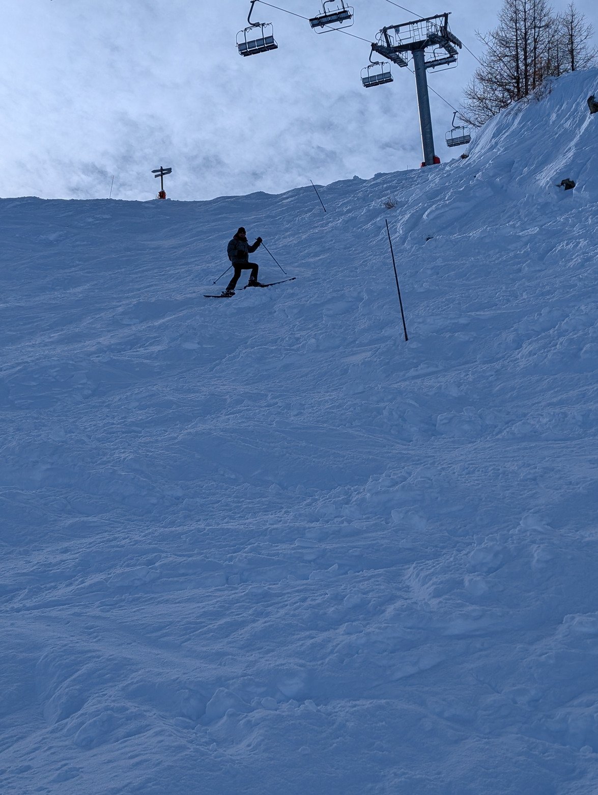 Après avoir manqué de me faire découper deux fois par des champions des pistes bleues, les entres pistes et champs de bosses de Pendine sont plus surs. Là où le passage a fait des bosses en neige douces c'est très skiant. En dehors c'est labouré et il faut une dose d'effort et de vitesse certaine pour y trouver de la glisse, pour ce qui me concerne ce n' est pas le plus agréable pour ce jour. On a pris goût à la vraie poudreuse ces derniers temps : #onlyfreeridecanjudgeme