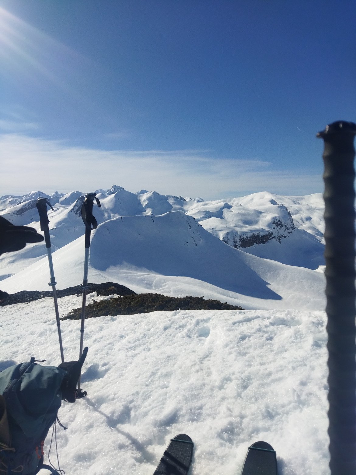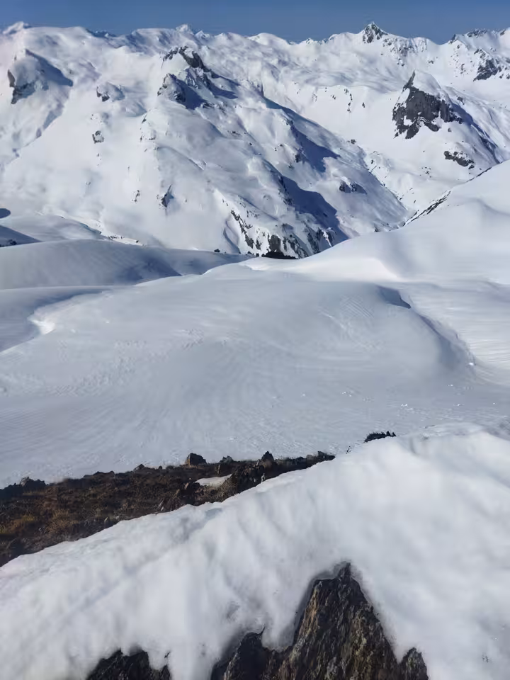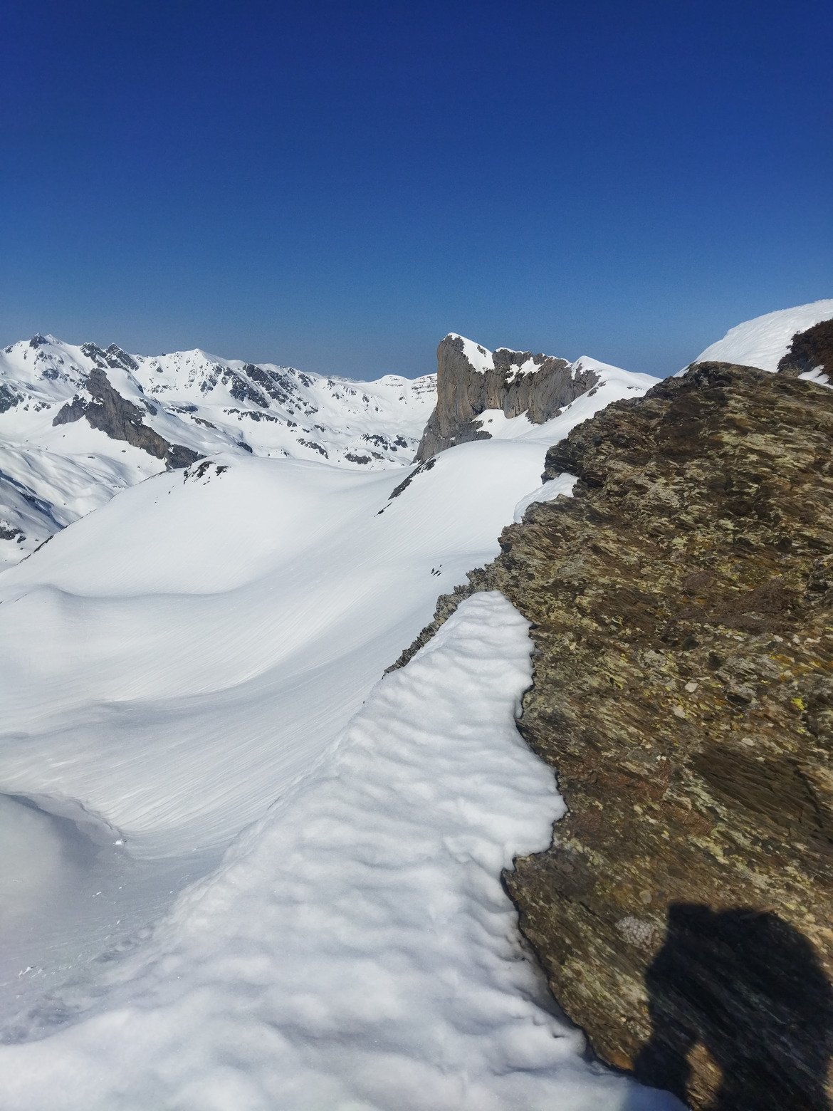 Conditions world class 5 étoiles, deux itérations sur ma pente fétiche depuis le sommet, puis partage d'une longue descente en Sud avec un gars rencontré là haut.