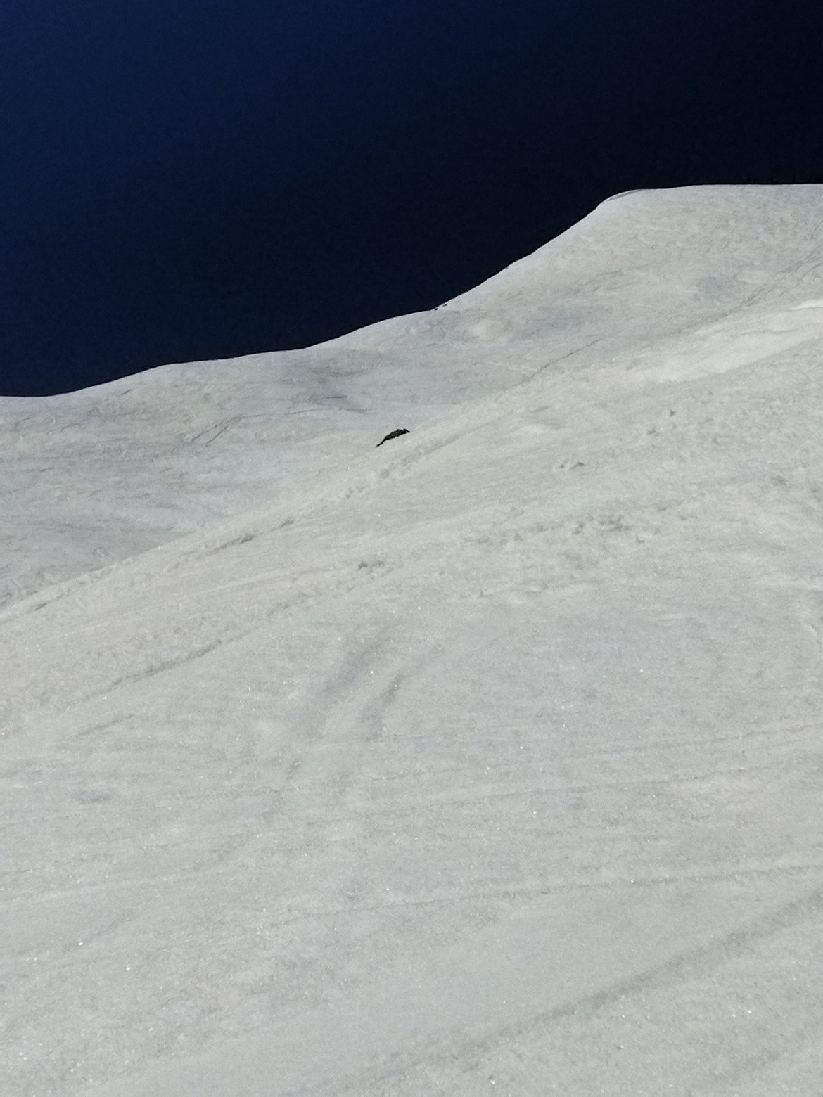Sous la pente sommitale c'est bingo : excellente moquette sans traces.