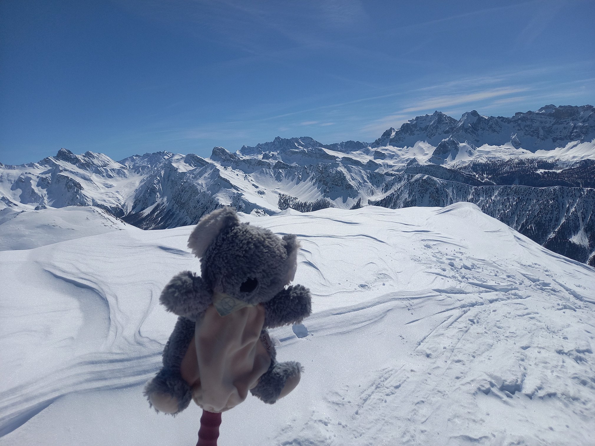 Soleil ..... panorama sur barre des ecrins, aiguilles d'Arves, mont viso.....