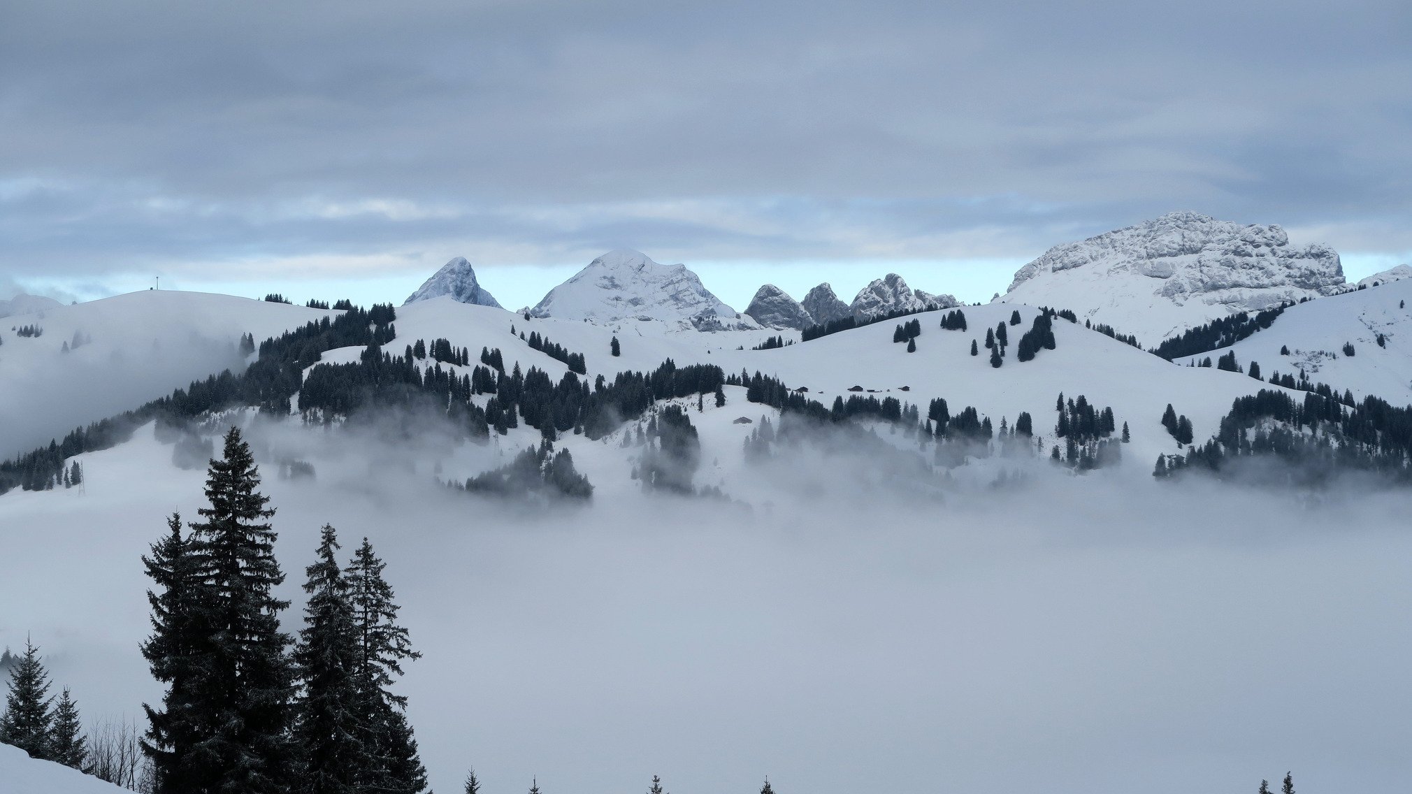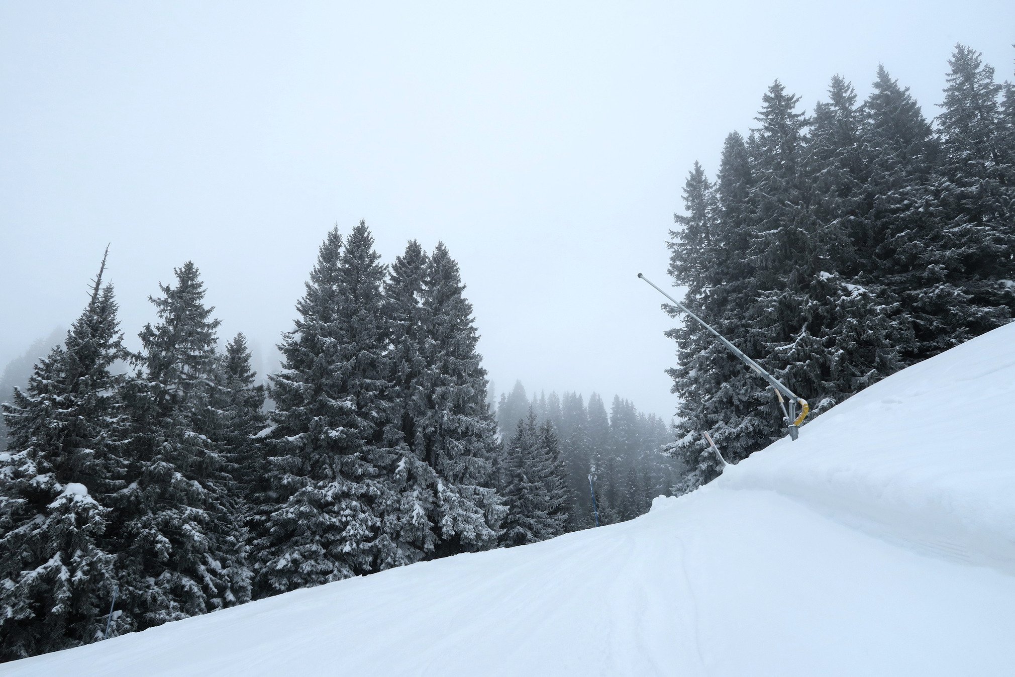 En arrivant par le train à l'ouverture des remontées à Sannenmoser, je suis cependant cueilli par quelques centimètres d'une neige aussi légère que fraîche, tombée durant la nuit.