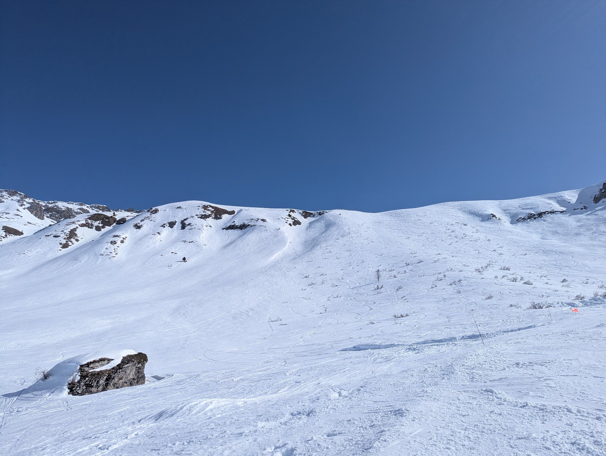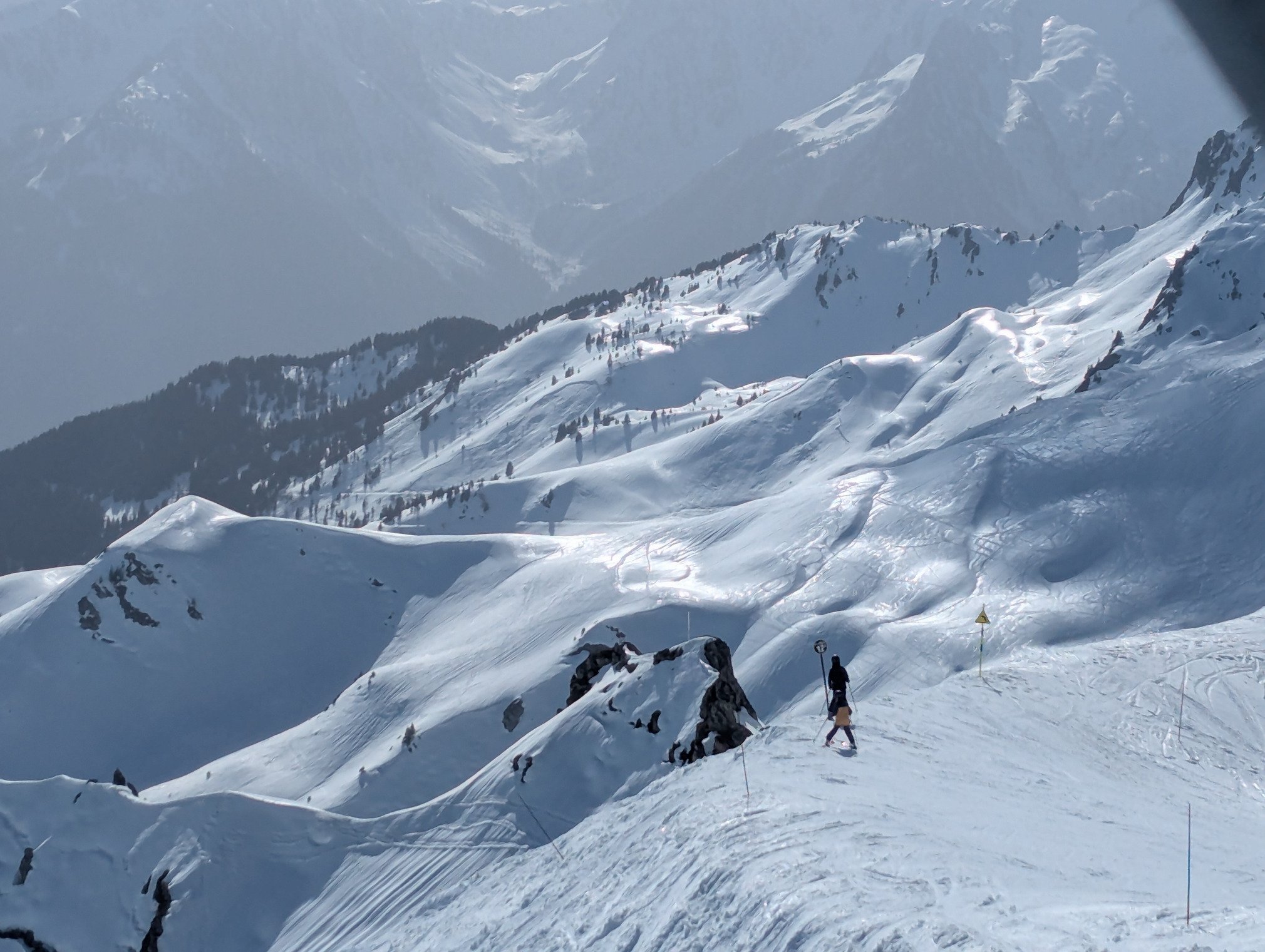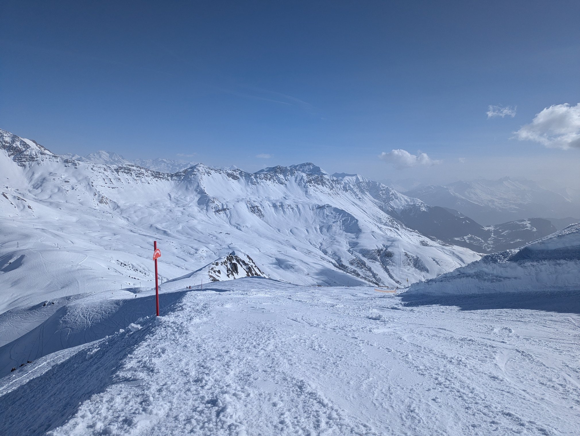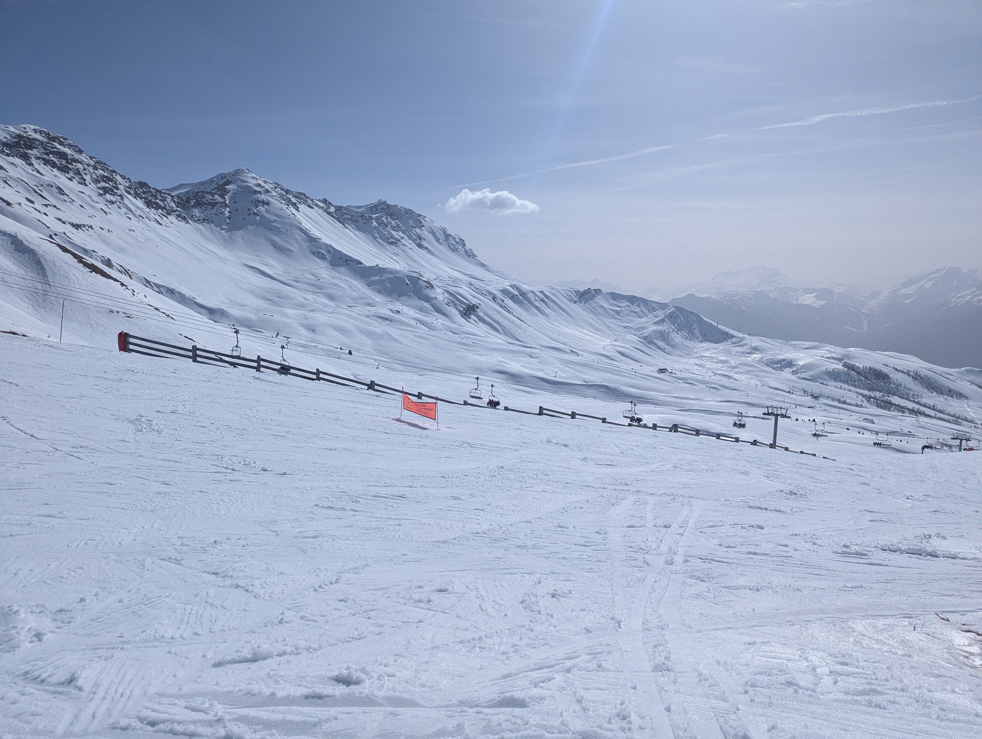 La neige ramollit sur la plupart du domaine mais l'enneigement reste largement suffisant et le ski est bien agréable sur l'ensemble du domaine.