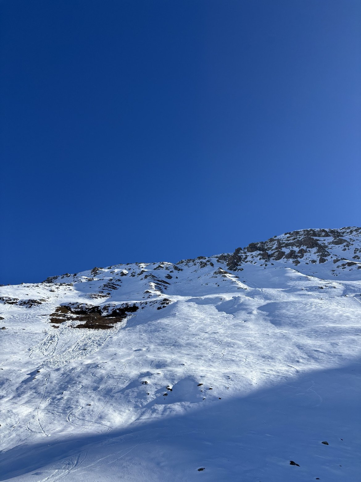 Neige plutôt bonne mais très changeante, ça prend un peu les skis. Pas mal de sluff, vigilance obligatoire.