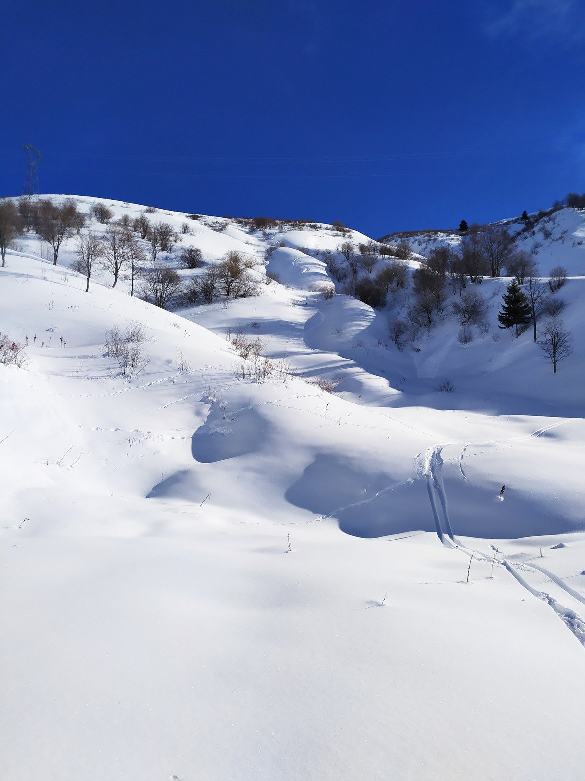 -pas de vent. du soleil. ah d ailleurs ça s est encore réchauffé d un cran. j ai eu la mauvaise idée de prendre les peaux avec moi en pensant qu il les faudrait pour aller tracer. (ai croisé des traces de chamois en couple probablement pic3) bilan : apres un premier itineraire où je remonte en podfuck plein sud, j ai perdu 2 L d eau en 20 min, c est mort, je reprend les TS. j en ai pris que deux au fait : Clochettes (pic5) et Marquis, et 2 fois le TK Schuss. et c était fabuleux :-) il reste énormément de place pour tracer , profitez en demain sans modération , on est à 4/5 today.