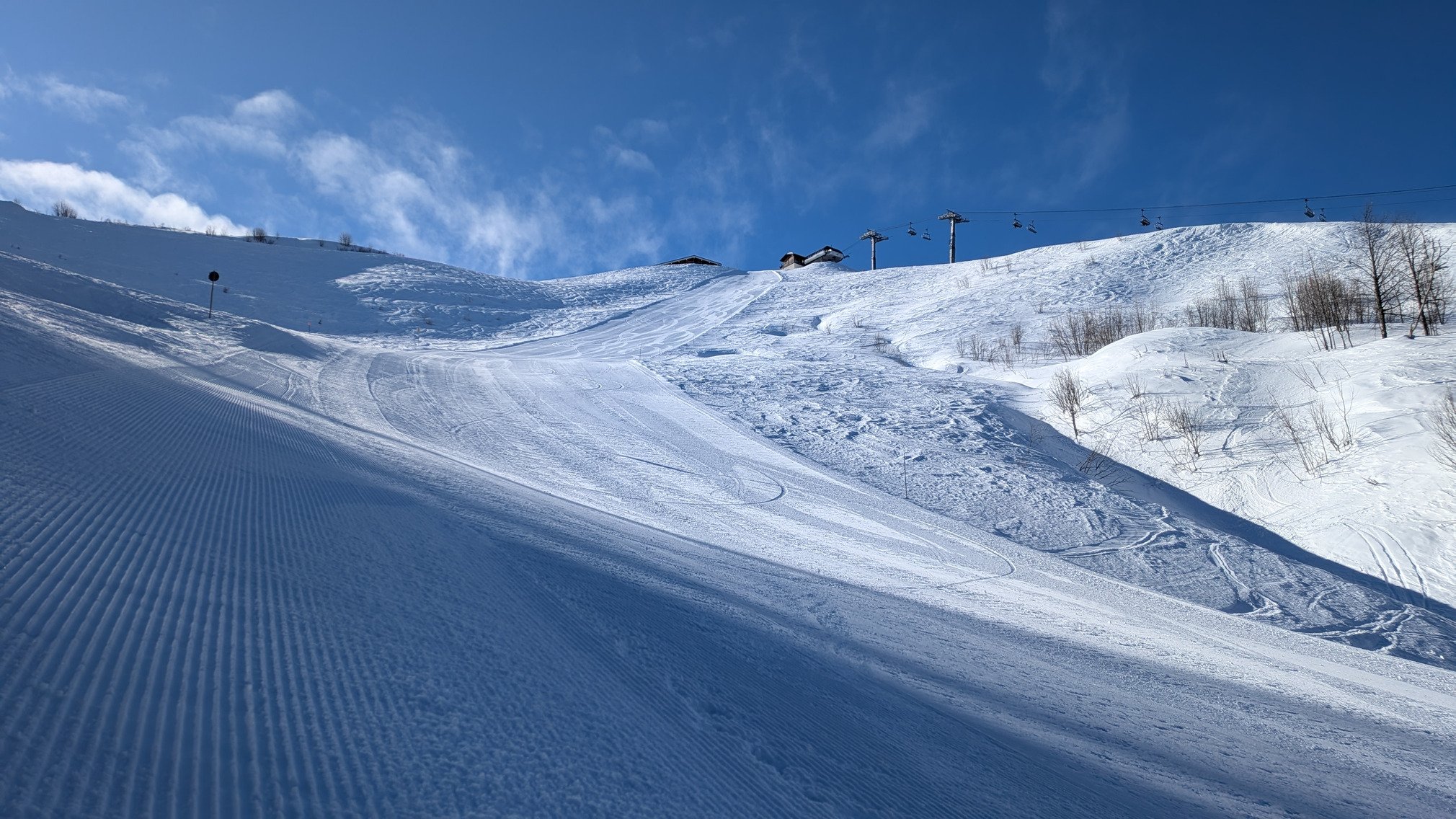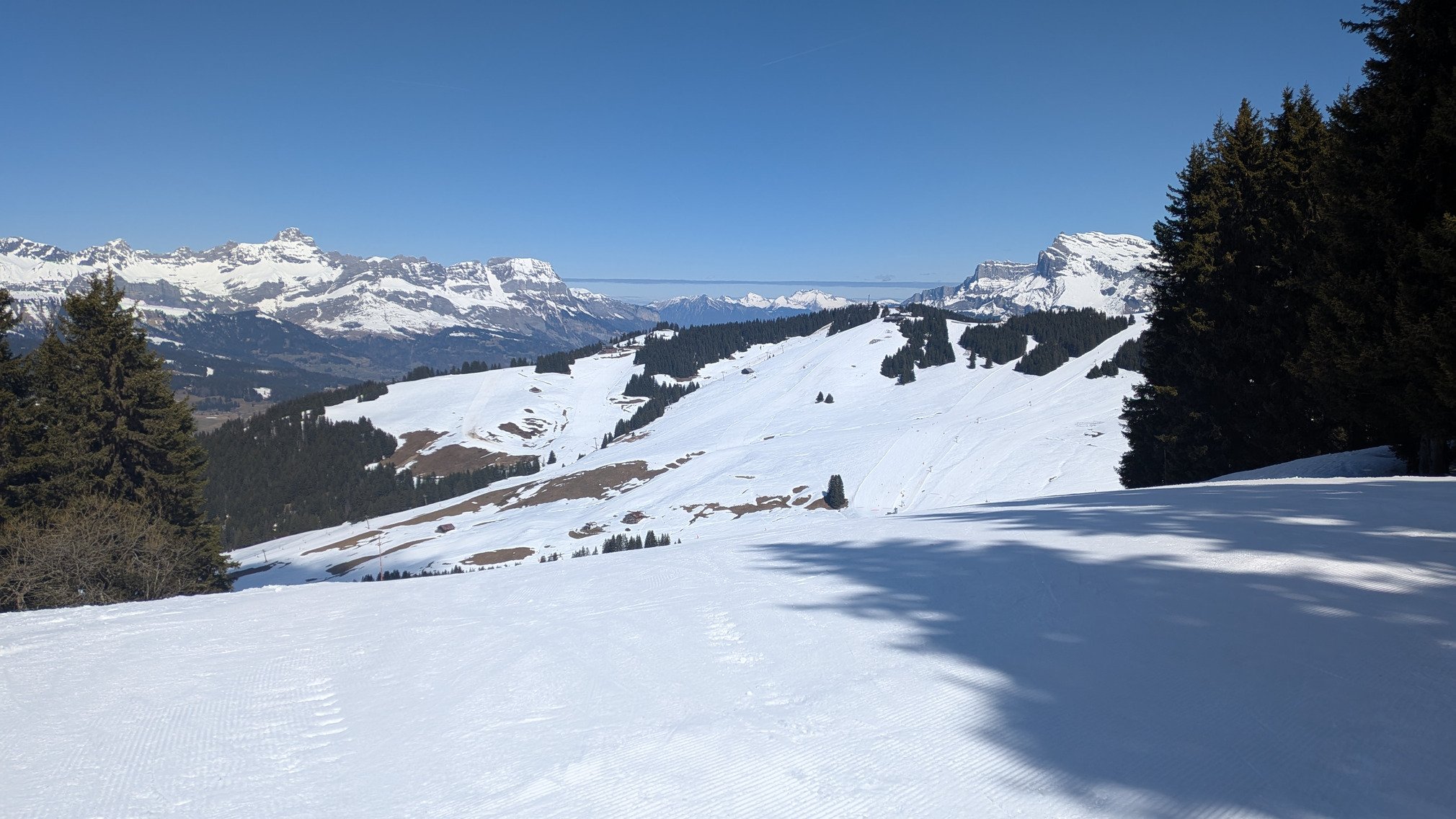 Je commence par le secteur Alpette, et effectivement le regel a Ă©tĂ© faible cette nuit mais l Alpette est juste dure comme il faut et accroche bien. La combe Allais juste a cĂŽtĂ© est top, encore de la neige de Janvier ! et elle bouge pas, a 11h, avant que je change de secteur, elle est tjrs top đ€©