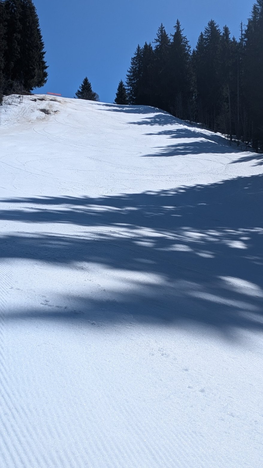 Il est pas loin de 13h, je prends la direction du retour parking en passant par le secteur du Grand Vorasset et lĂ je tombe sur Schuss tout juste decaillĂ©e et personne n' est encore passĂ© et pareil sur Voltigeur đČ super moquette, je tourne un peu sur le secteur... Personne par ici !!