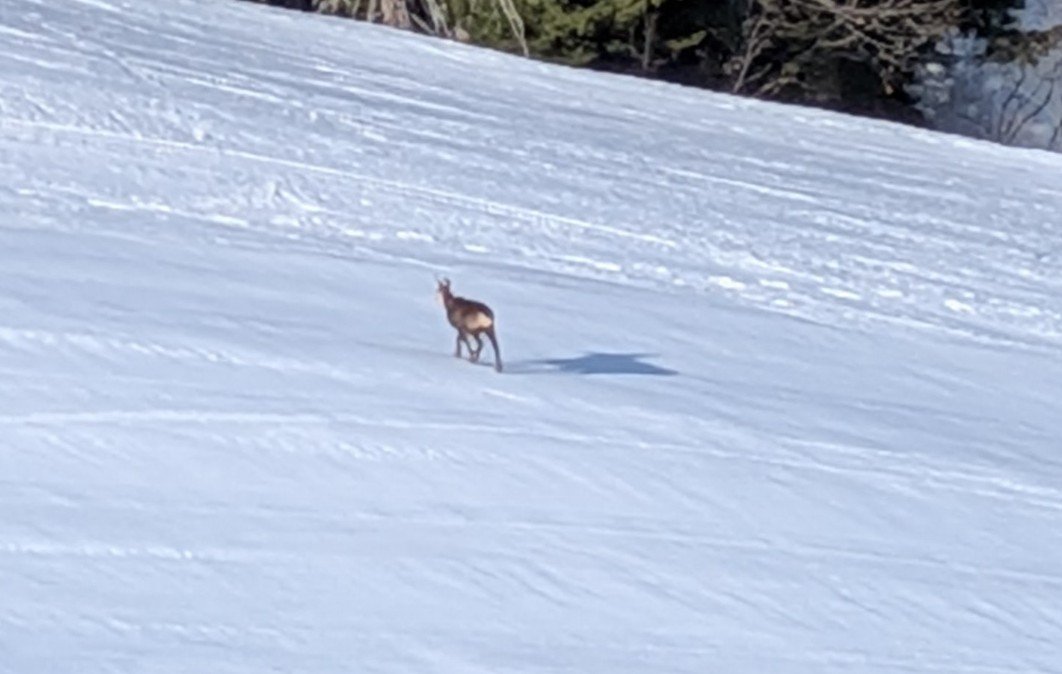 Petite matinée qui commence bien par une rencontre inhabituelle sur les pistes... J'avais l'habitude de croiser pas mal de bipèdes, un quadrupède c est plus rare 🤩, il a décidé de reprendre ses quartiers un jour plus tôt pour nous montrer qu'il est chez lui! 😉