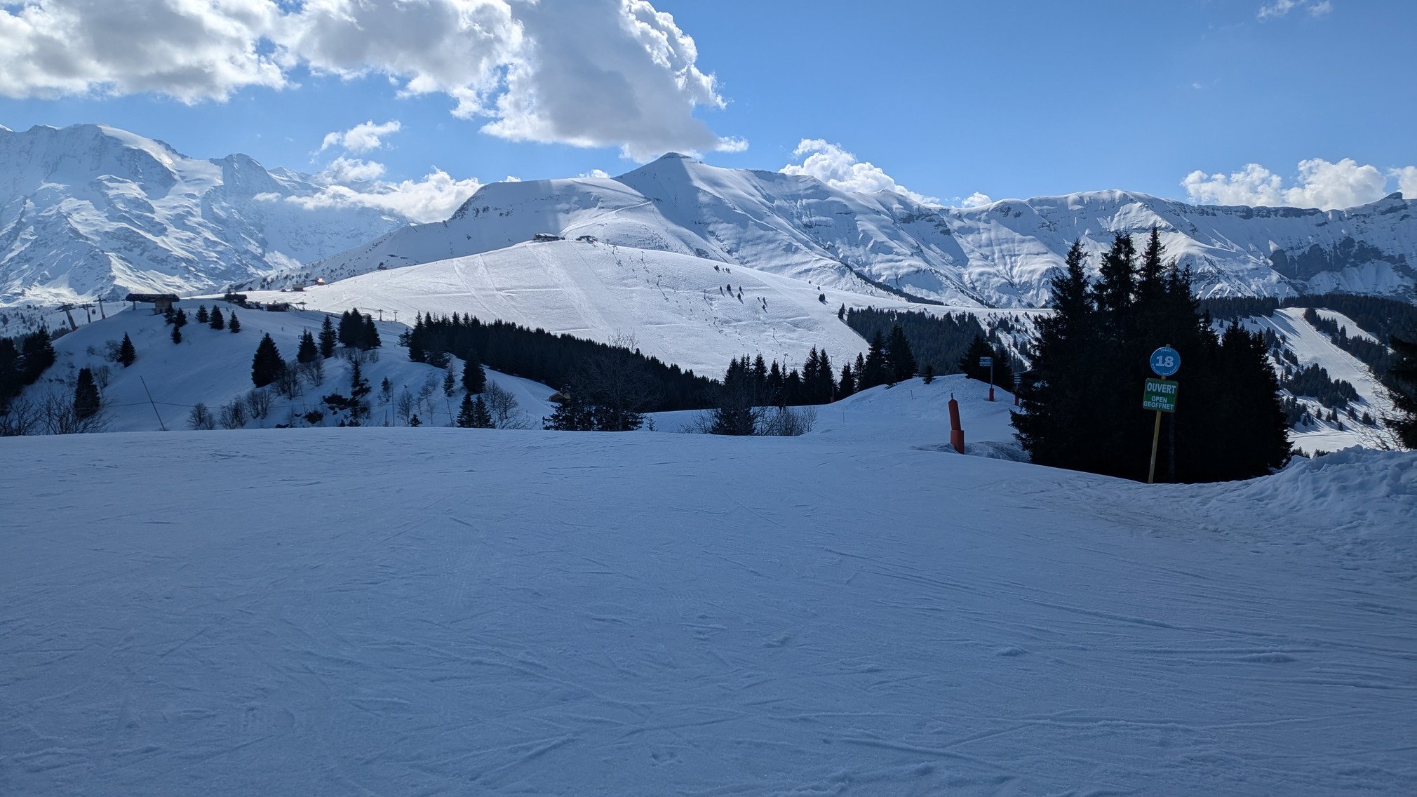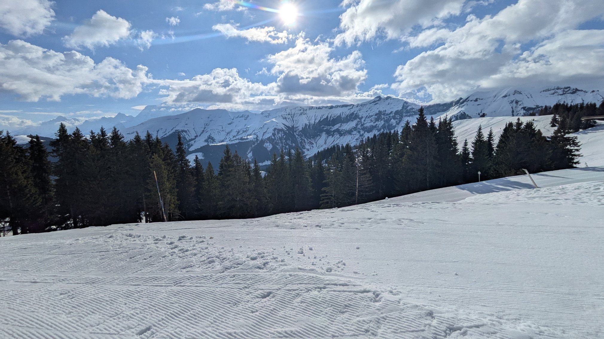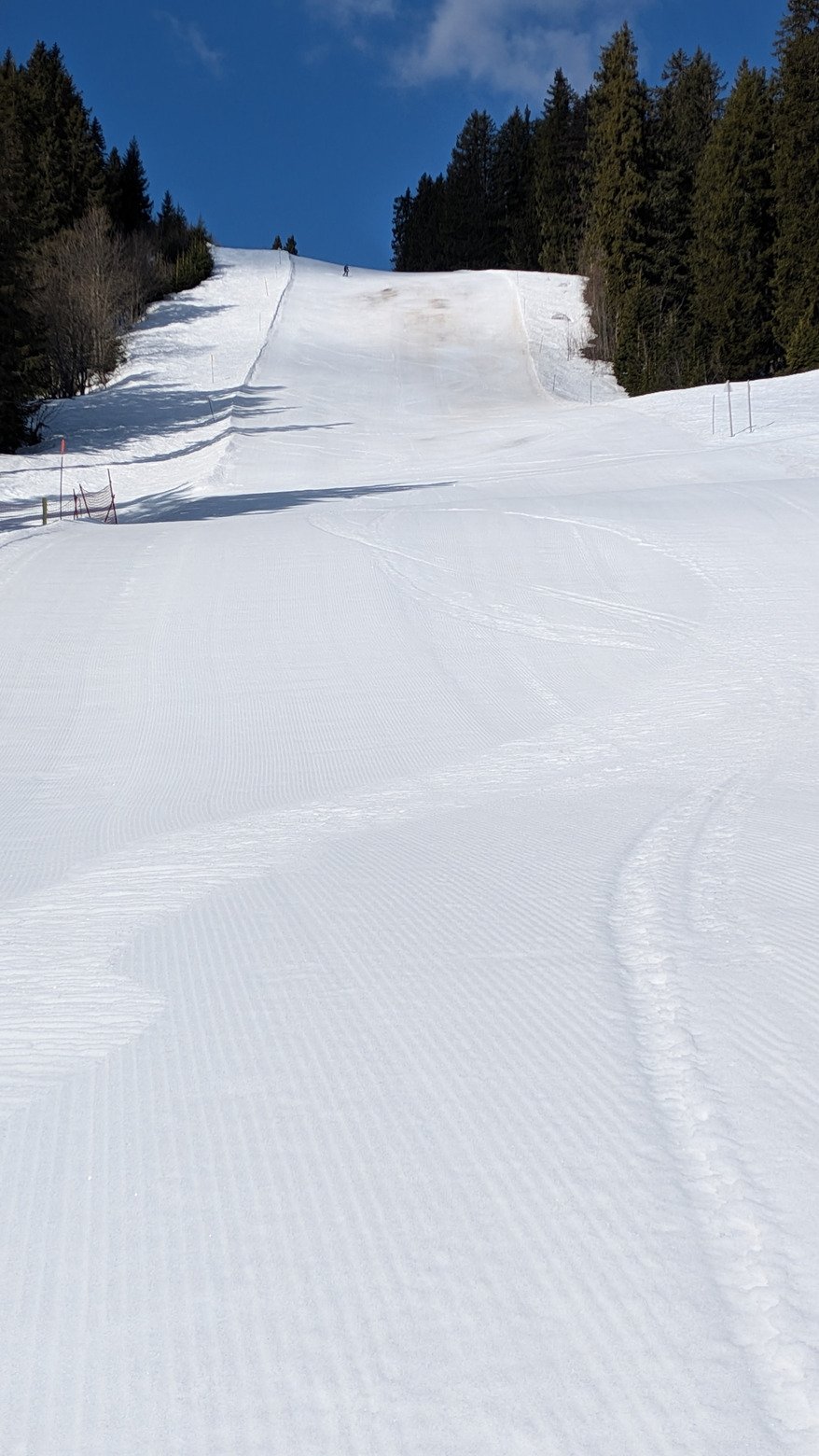 Mais écourtée au vue des conditions où on oscille entre neige dure lisse sans accroche et neige molle... Trop molle. Pas super agréable a rider tout ça... Gros changement par rapport à hier et je me demande si ça a pas un peu pris la flotte hier soir (il a aussi un peu plu dans la vallée) 🤔