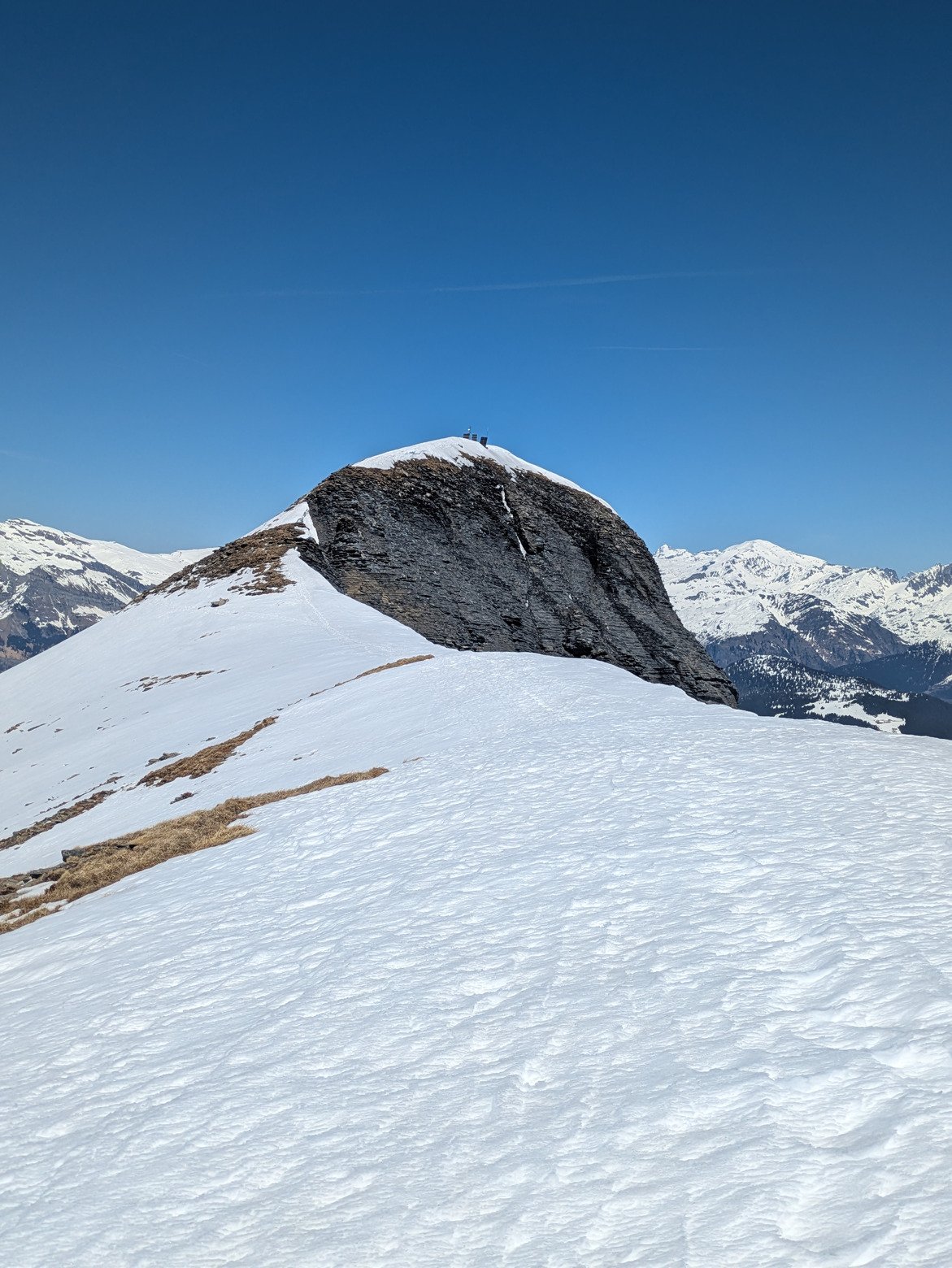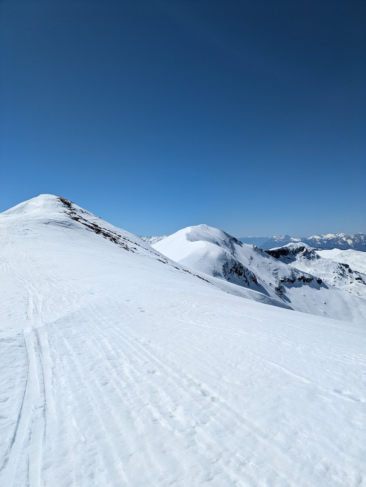 C'est une chouette sortie que je conseille, environnement alpin sans trop de difficulté et sans être trop loin des remontées en cas de problème. Je pense qu'en plein hiver les crampons piolet peuvent être utiles pour monter la tête de la Combaz et le mont joly. Aujourd'hui c'était plutôt ambiance motte de terre sur les crêtes.