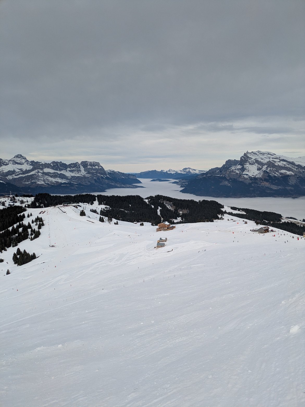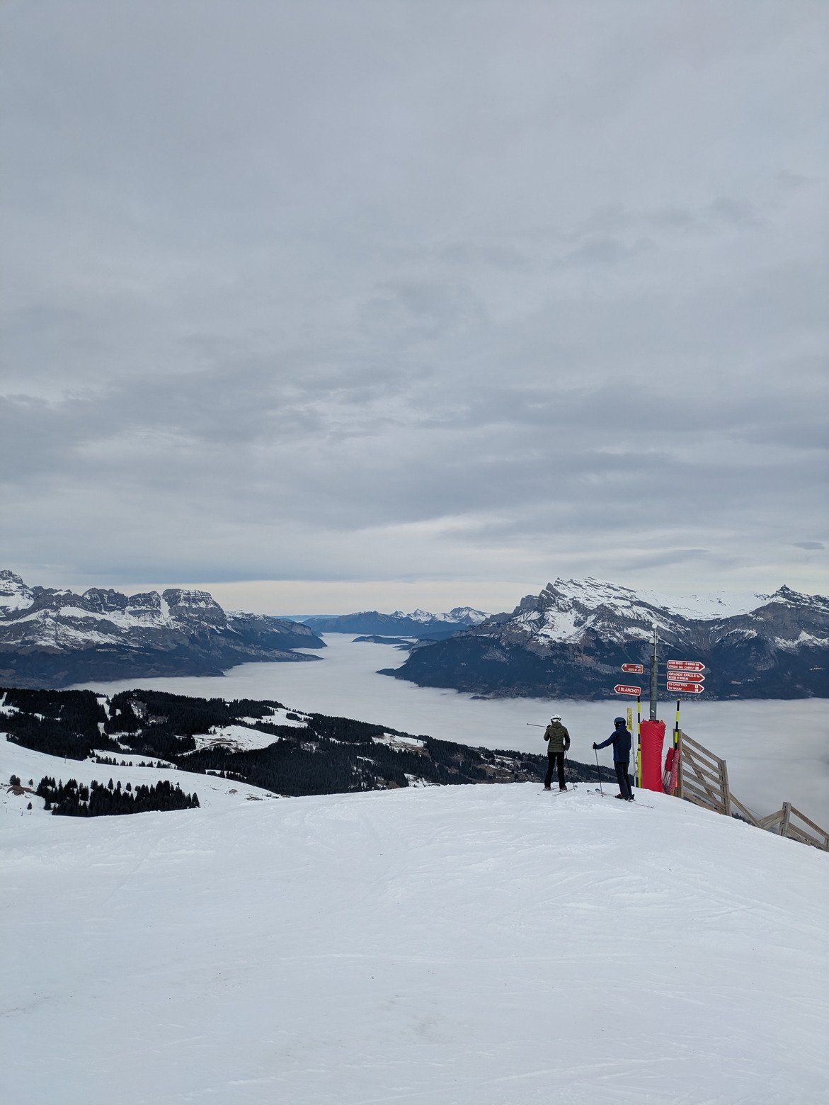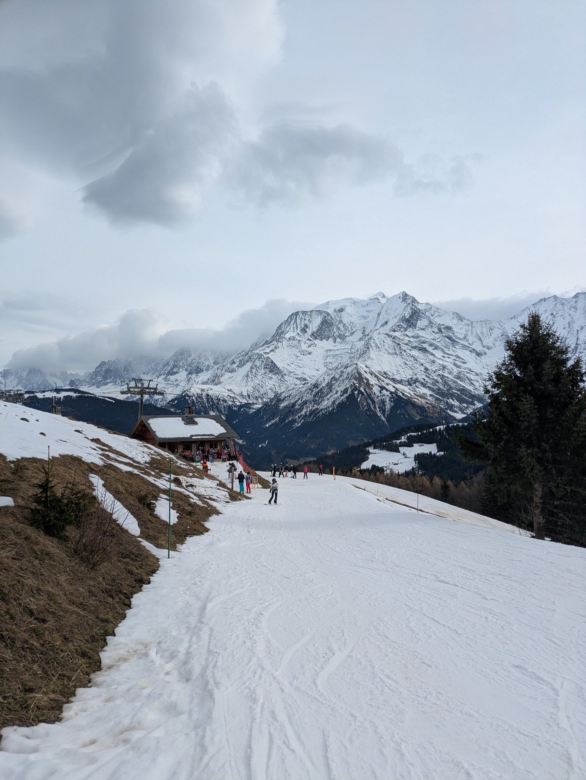 Au delà de cet aspect logistique, la réalité sur les skis fait moins rêver. il y a pas mal d'herbes et quelques cailloux qui traînent, ce n'est pas fou à skier surtout avec les nombreuses plaques de glaces présentes. Ajoutez à ça de nombreux skieurs au comportement assez imprévisible, ça donne un cocktail explosif.