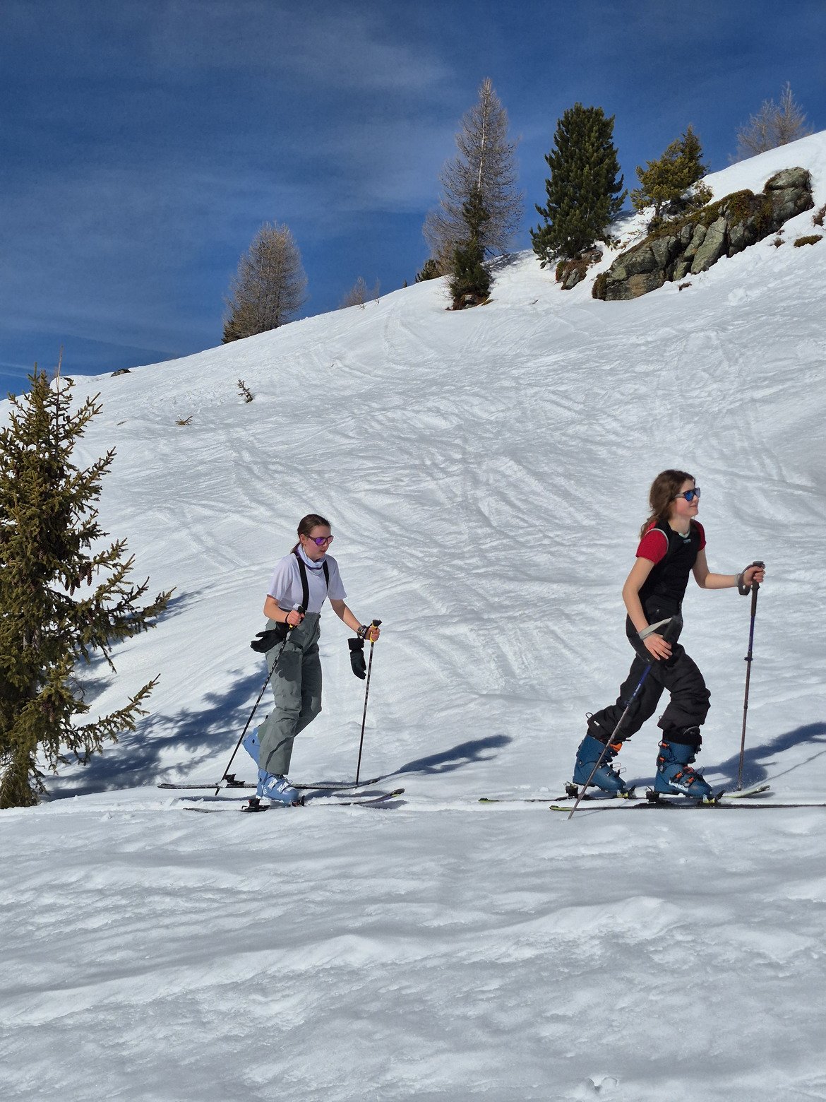 Après notre sortie ski de rando matinale, quelques pistes sur le domaine de St Luc puis initiation ski de rando pour la filleule de ma femme.