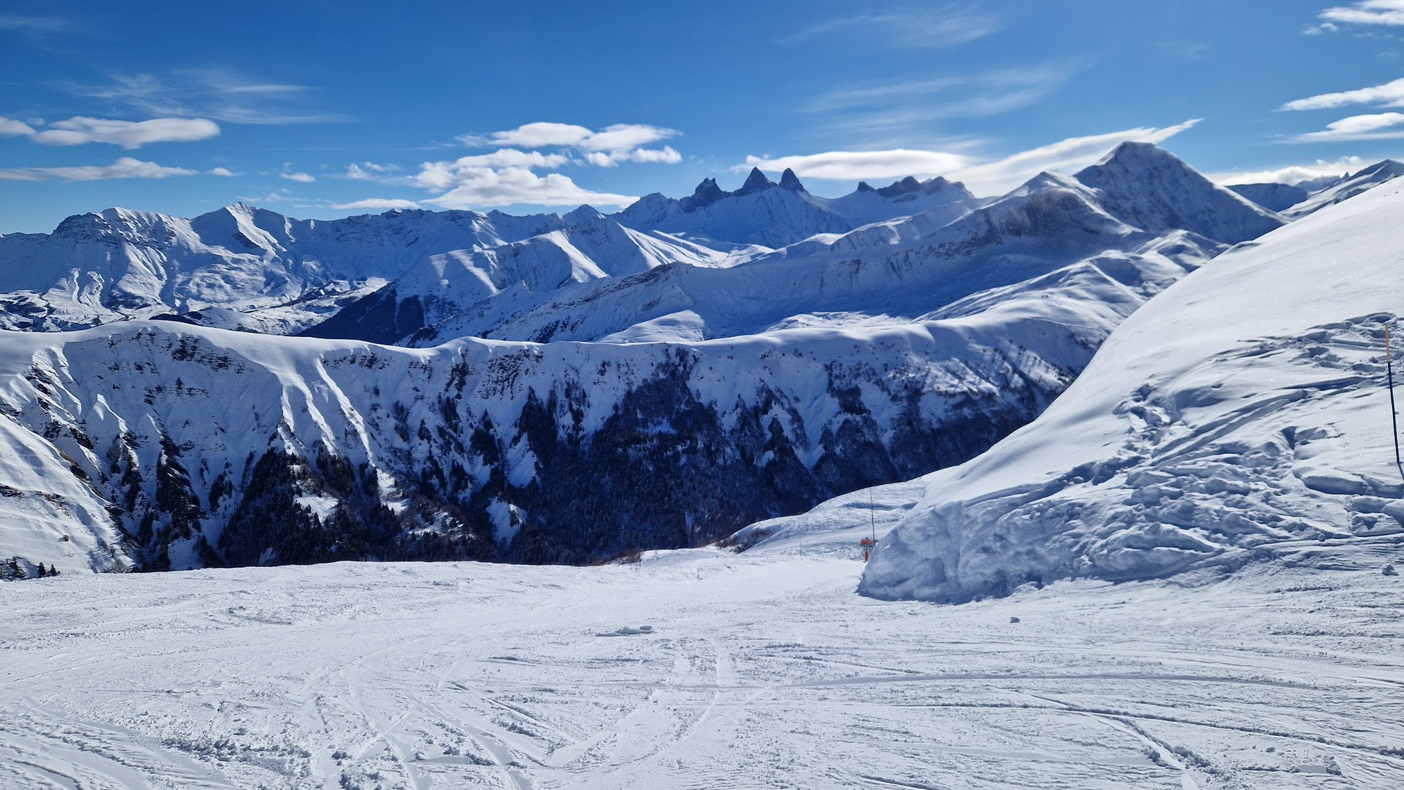 On commence avec un soleil omniprésent pour profiter du panorama. La transition jusqu'au domaine de Saint Sorlin est un peu fastidieuse avec des remontées hors d'âge et souvent arrêtés.