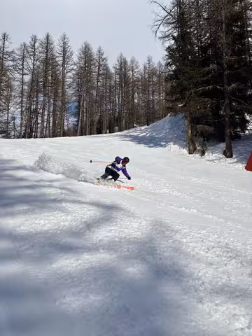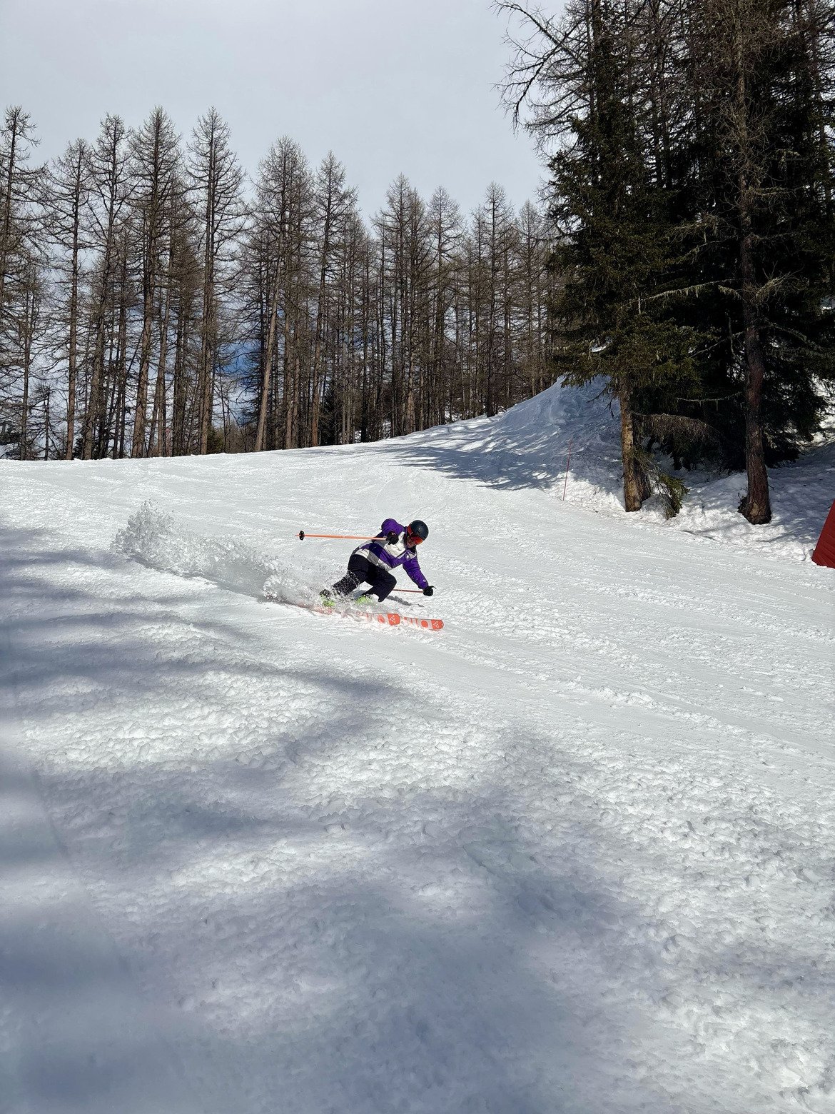 Après une pause déjeuner bien méritée, on repart souder sur les pistes. Je ne sais pas si c’est la neige ou si je me sens mieux, mais j’arrive alors à beaucoup plus envoyer, carver encore et encore. Les skis accrochent, c’est parfait.