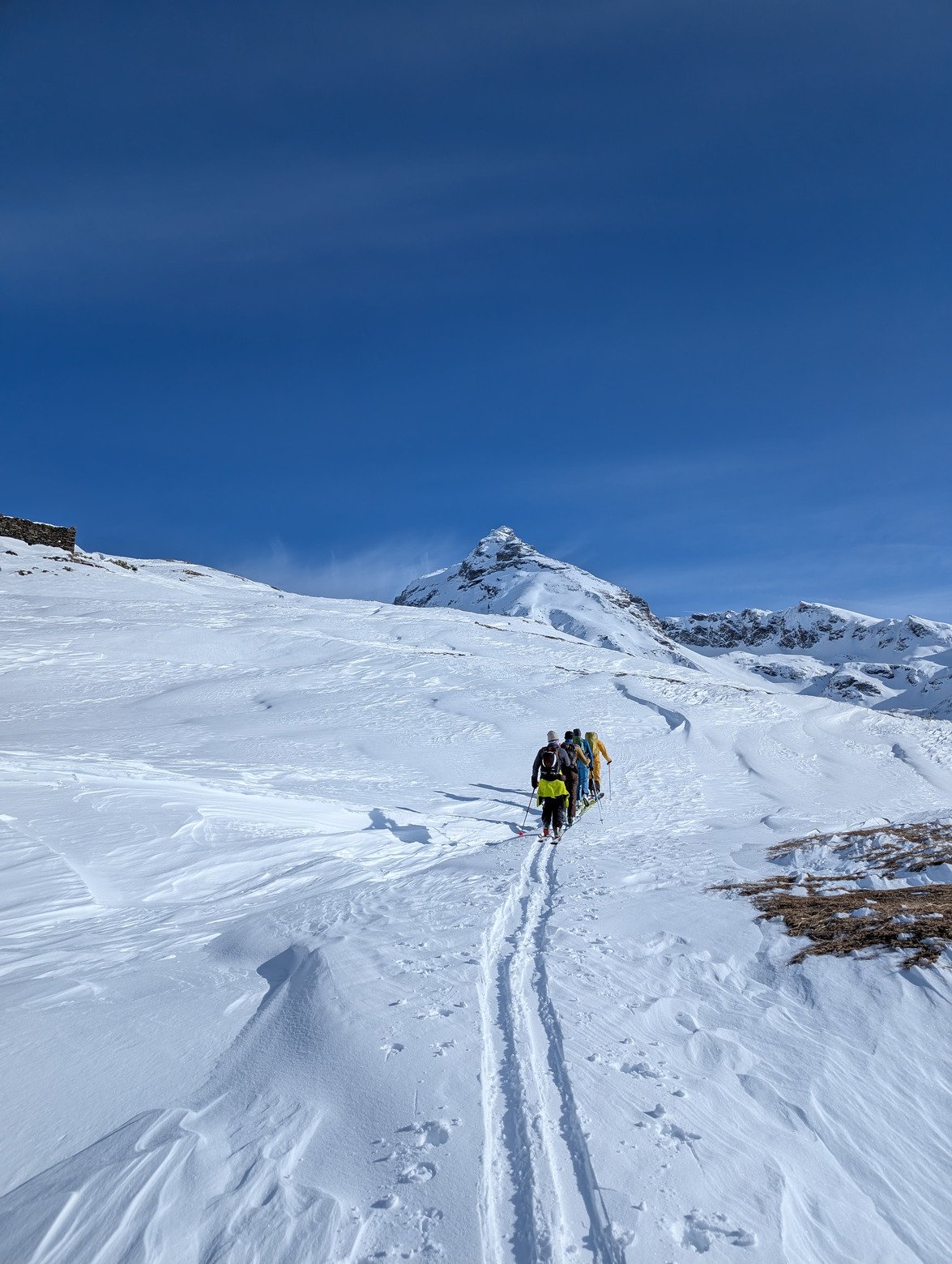 Beau temps, belle neige, bien soufflé dans le vallon derrière le col du Mont. 20cm de frais mais un peu variable selon les orientations et la prise de vent.