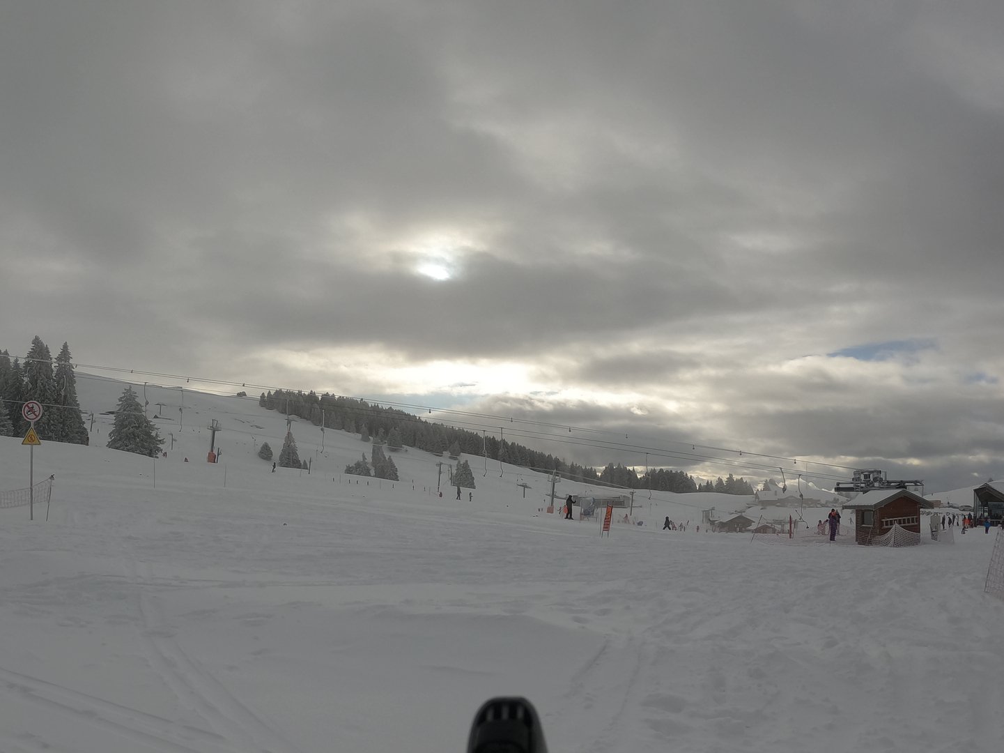 Seuls les 2 tire-fesses d'en bas sont ouverts (sans doute par manque de temps pour sécuriser) laissant tous les hauts aux randonneurs. Plutôt que mon habituelle noire, je monte par Sapinette, descente pas Bélvédère, remonté par Bucherons et descente finale à nouveau par Sapinette (https://youtu.be/MmZuKQKiPGg). En fait, si j'avais su avoir autant de visibilité, je serai passé par la noire ...