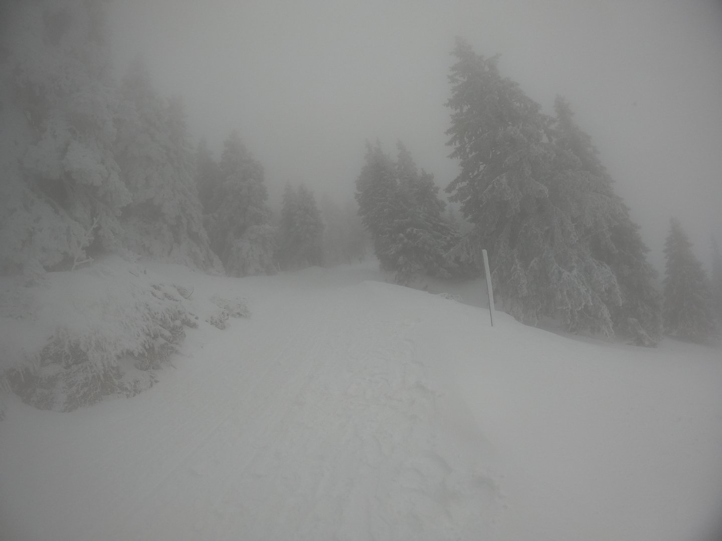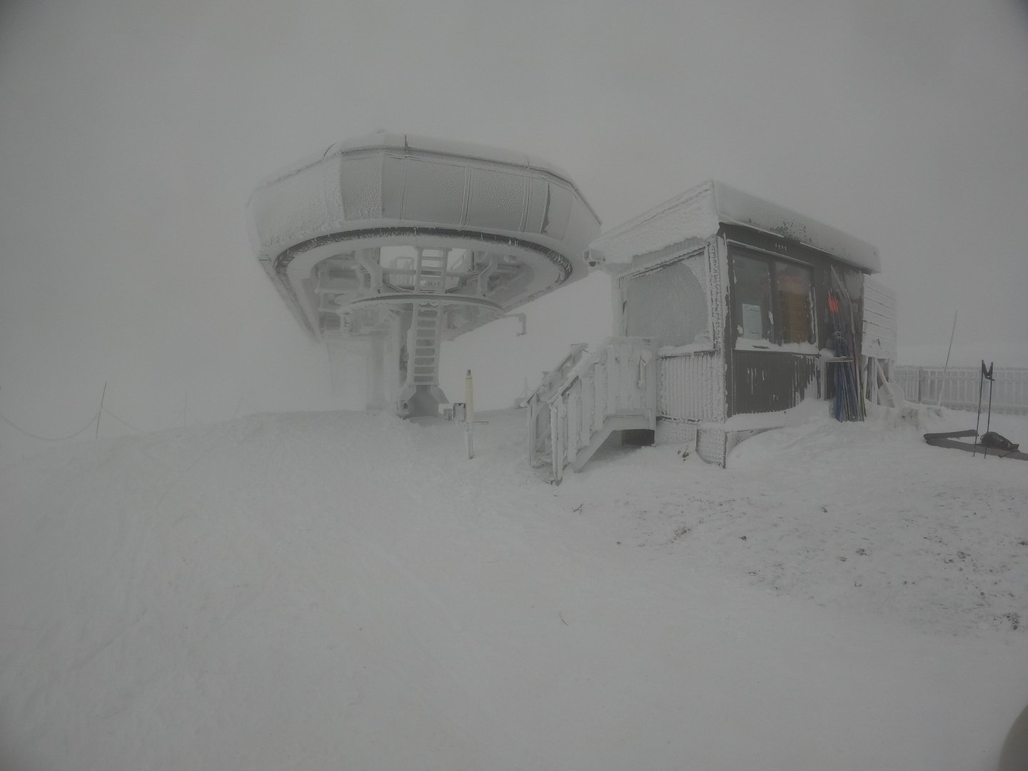 Arrivé sur place ... ça meule et on n'y voit pas plus que sur les webcams. Mais quelle PEUFFE !