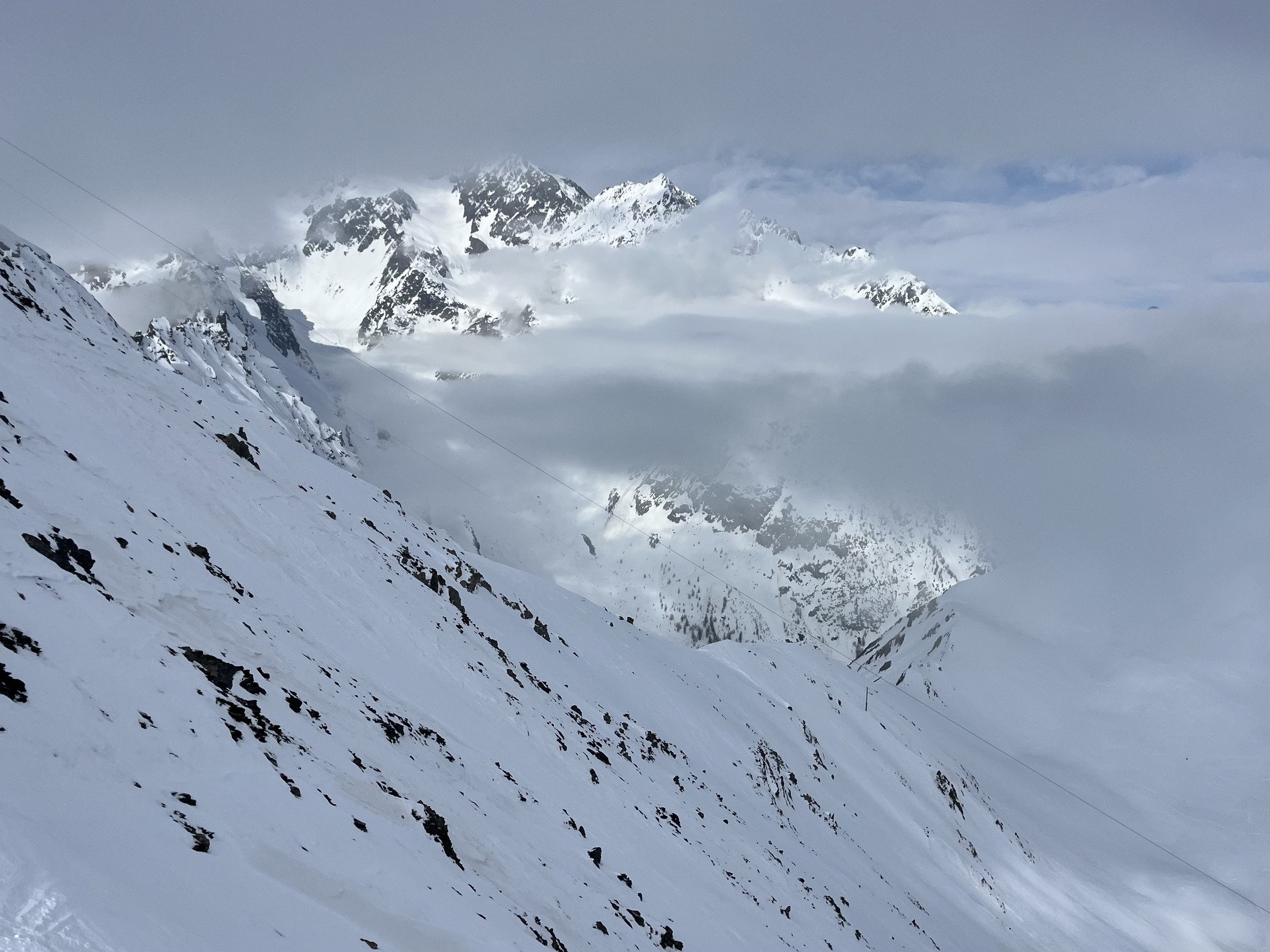 Go vers les vallons, le HP est immonde, des monticules de traces gelées. Les cuisses cuisent. Un nuage est bien accroché sur le haut mais on en sort rapidement.