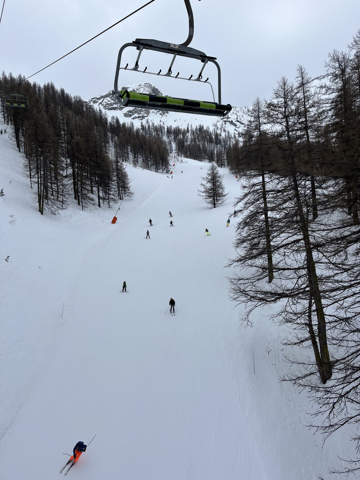 Moyennement motivée ce matin, en voyant les nuages arriver. Je pensais avoir jour blanc, de la neige gelée sur les pistes.