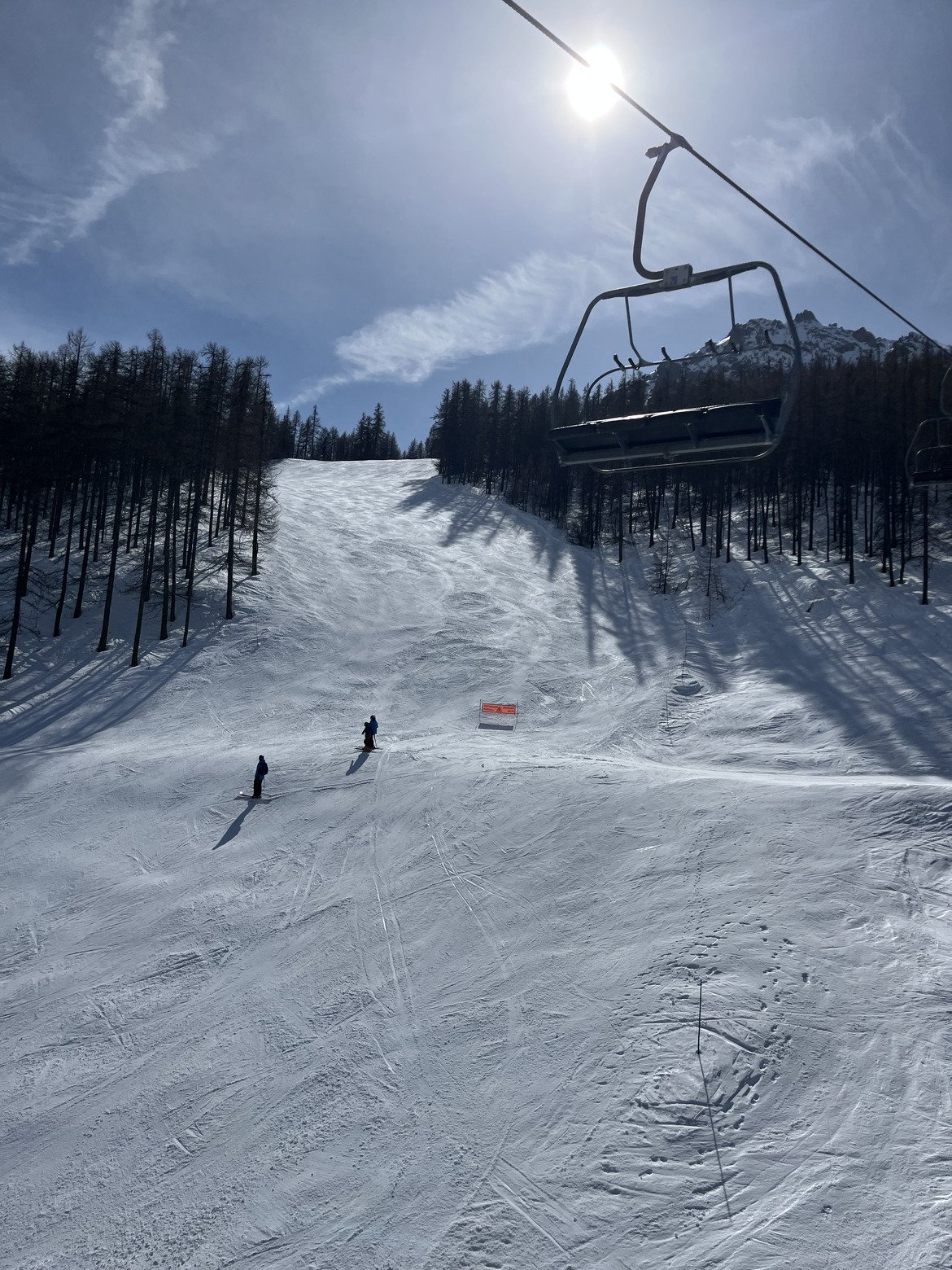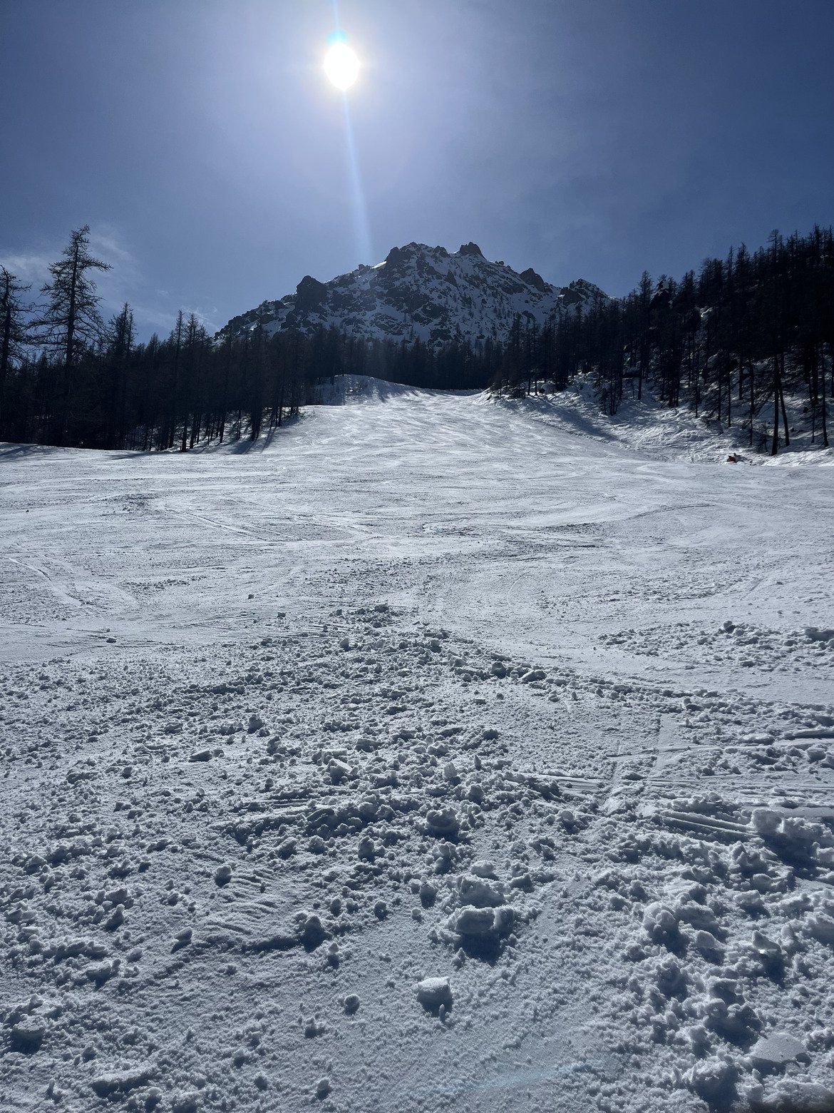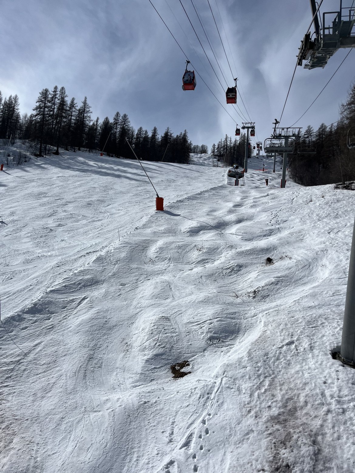 Encore une journée sous le soleil. Personne sur les pistes. Nous nous baladons aisément sur toutes la station de Monet jusqu'a Briançon. La Casse du Boeuf , Luc Alphand, damées. Tout en grandes courbes. Les HP sont toujours aussi impraticables. Nous n'avons pas trouvé le bon timing pour trouver de la bonne transfo. Il fait moins chaud, les pistes sont bien bonnes jusqu'a 15h.
