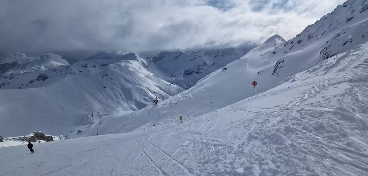 Drôle de journée sur les pistes de Serre Chevalier, environ 20cm de neige fraîche dans les endroits très abrités du vent. Les bons virages poudreux se comptent quand même sur les doigts de deux mains.