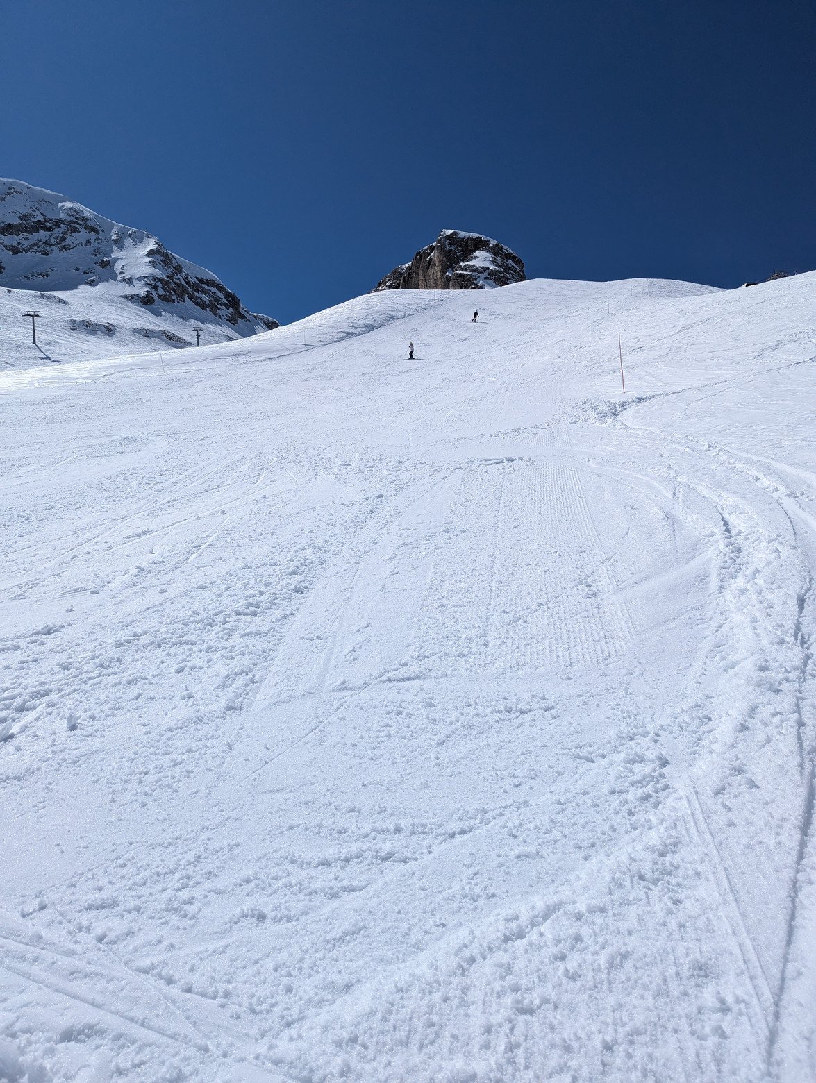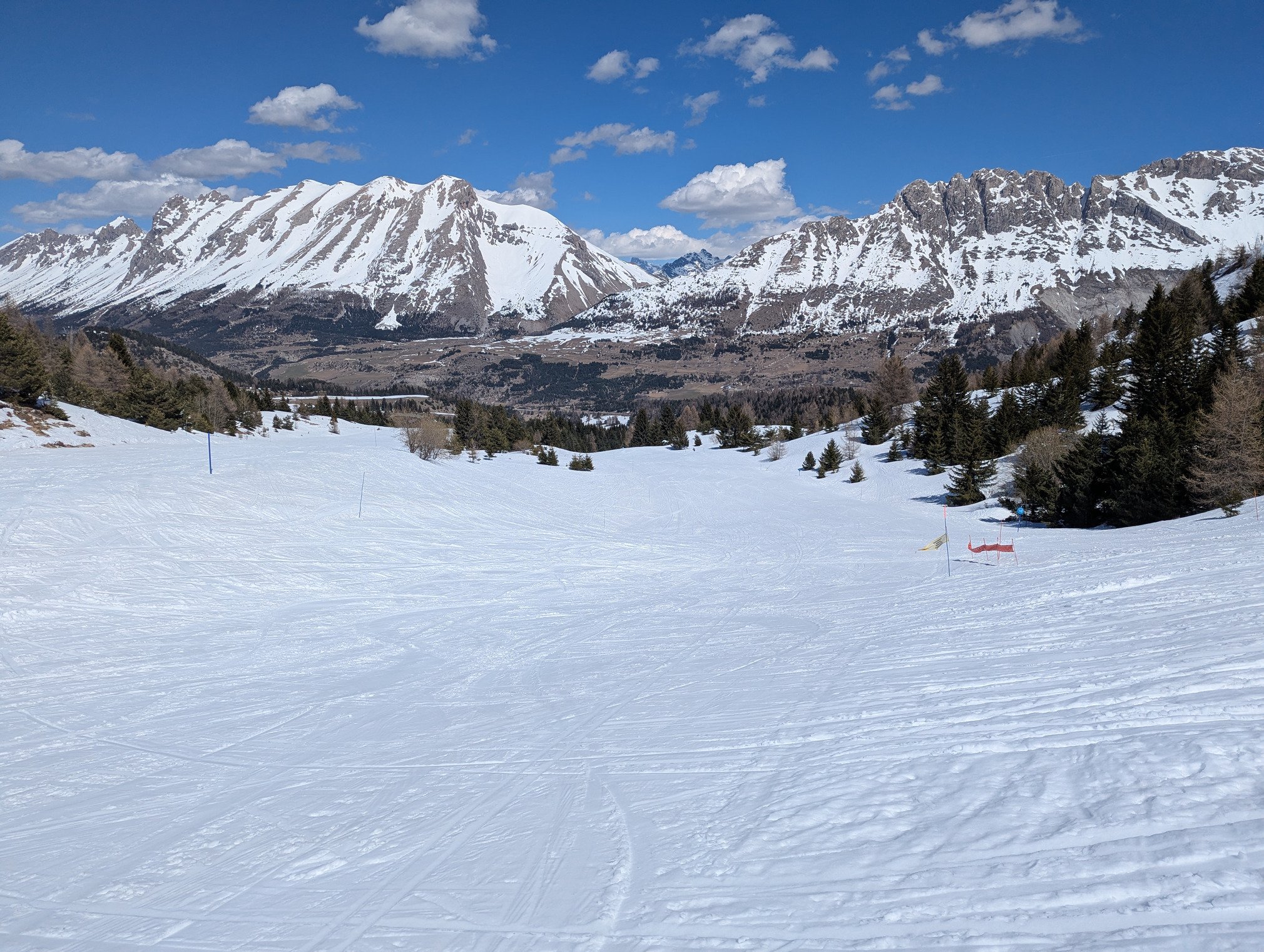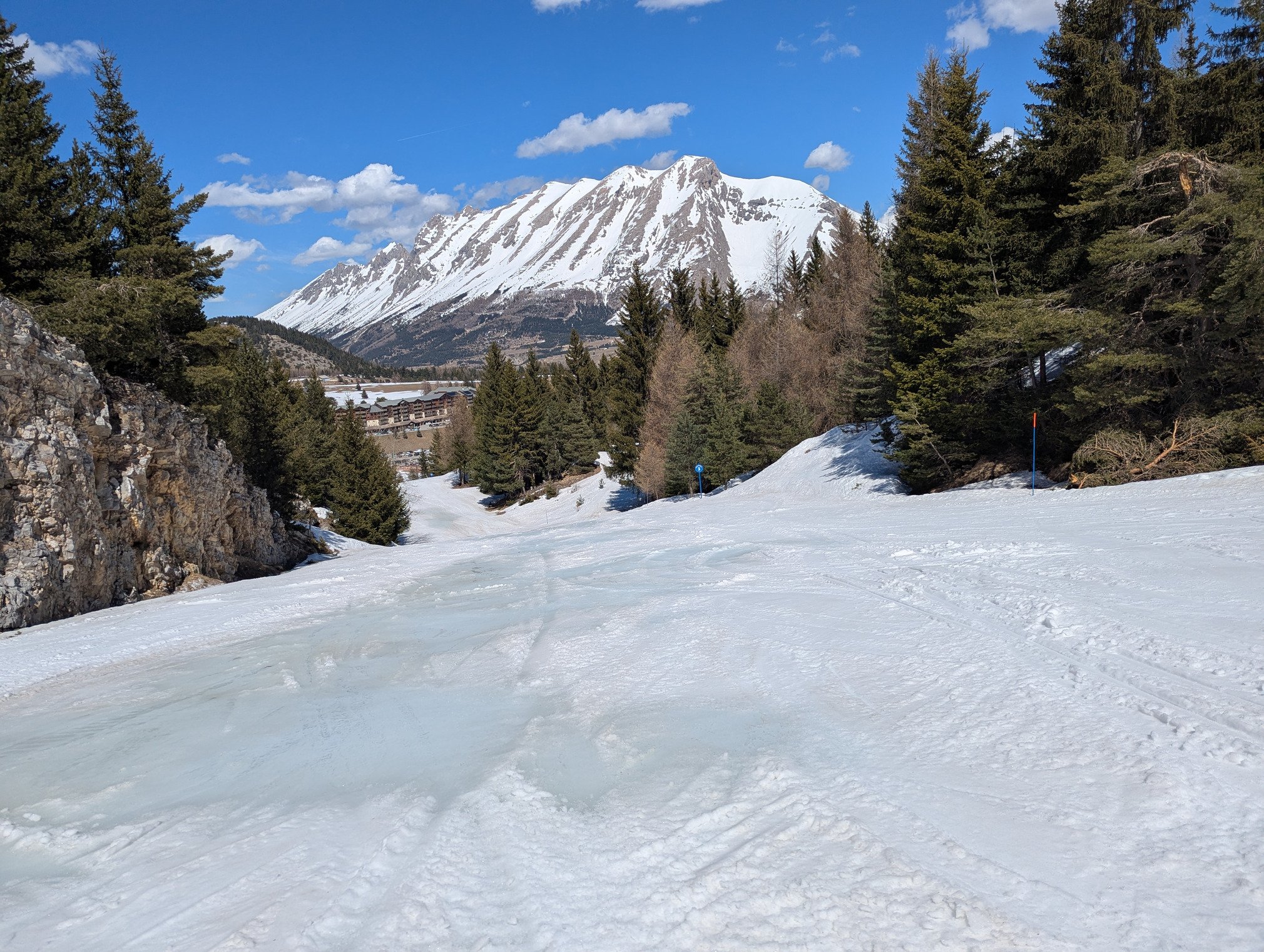 Les autres pistes étaient plus agréables, mais ça reste moins bon qu'hier. A partir de midi, ça transforme fort. Les (trop) nombreux shuss deviennent vraiment galère, surtout pour les enfants, car ça colle énormément.