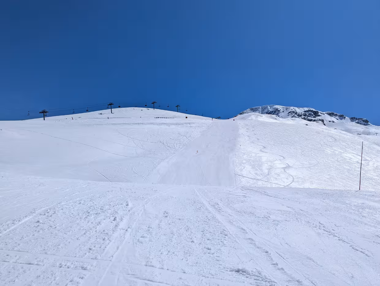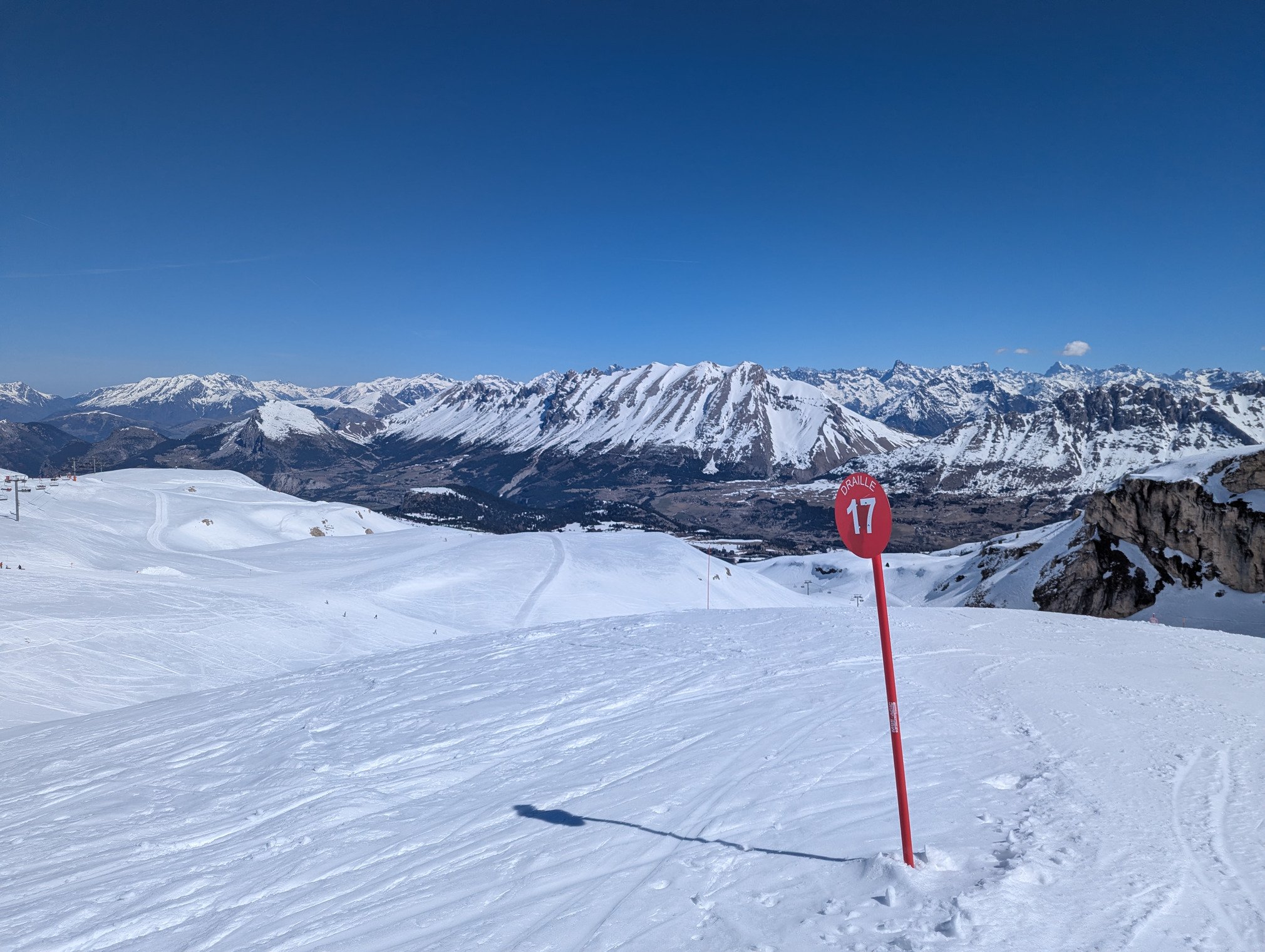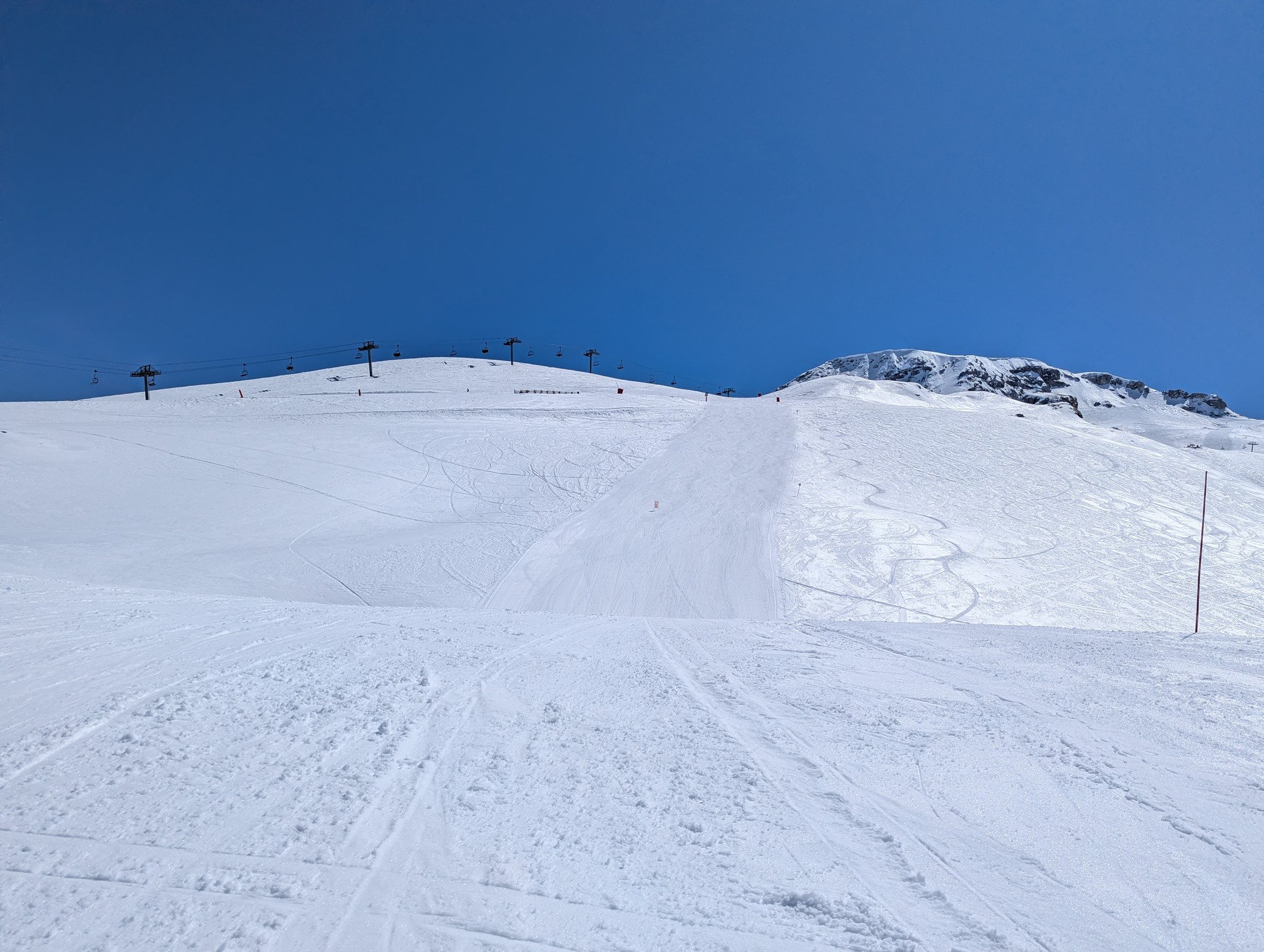 Les autres pistes étaient plus agréables, mais ça reste moins bon qu'hier. A partir de midi, ça transforme fort. Les (trop) nombreux shuss deviennent vraiment galère, surtout pour les enfants, car ça colle énormément.