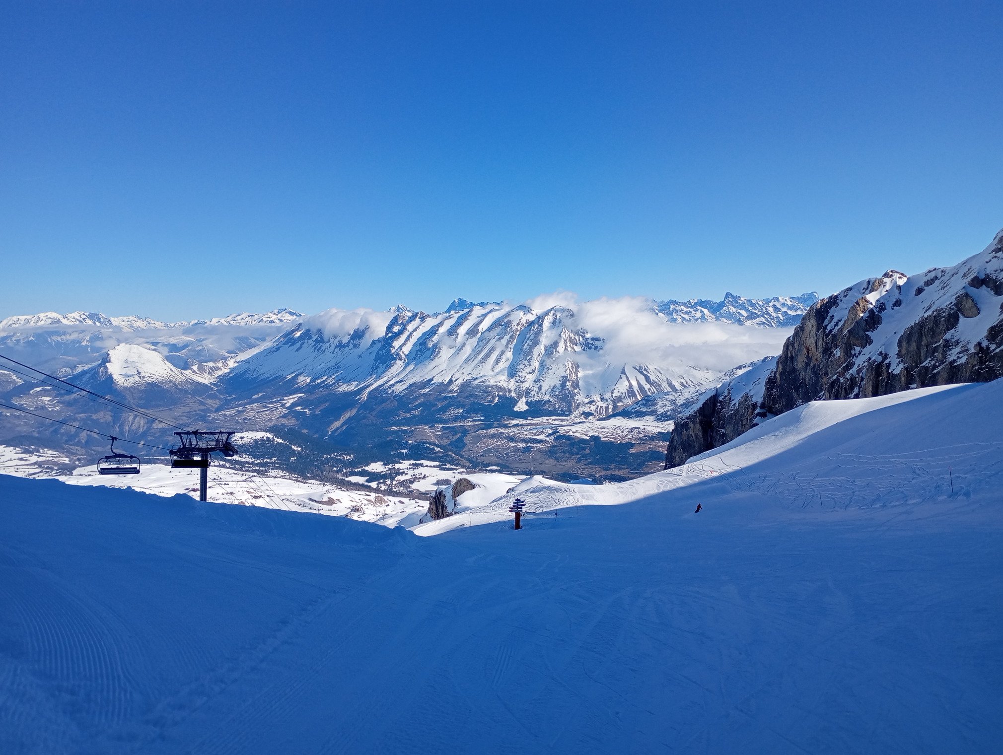Sur piste la neige reste très bonne, peu de verglas petit couché douce. En hors piste neige de printemps ou bien croûtée selon l'orientation. Peu de monde sur les pistes.