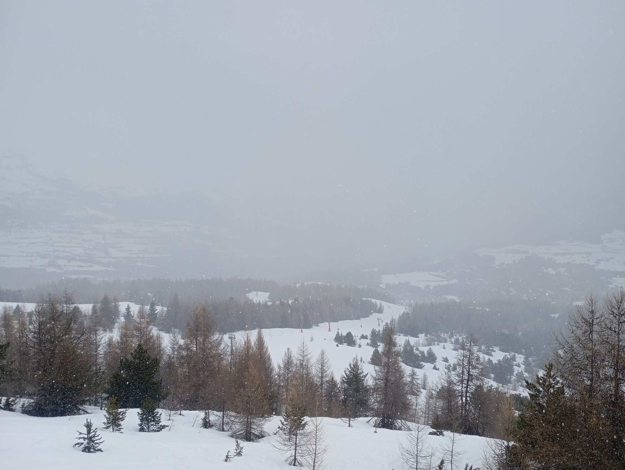 Globalement toujours la même chose depuis dimanche, il fallait se lever tôt. Cette fois ci non pas pour profiter de la poudreuse mais bien du soleil qui a brillé jusqu'à 12h. On voyait bien au niveau du pic de Bure les nuages qui stagnaient et qui ont fini par passer. On est parti à 15h sous un vent très fort, et des chutes de petits grains de neige assez durs.