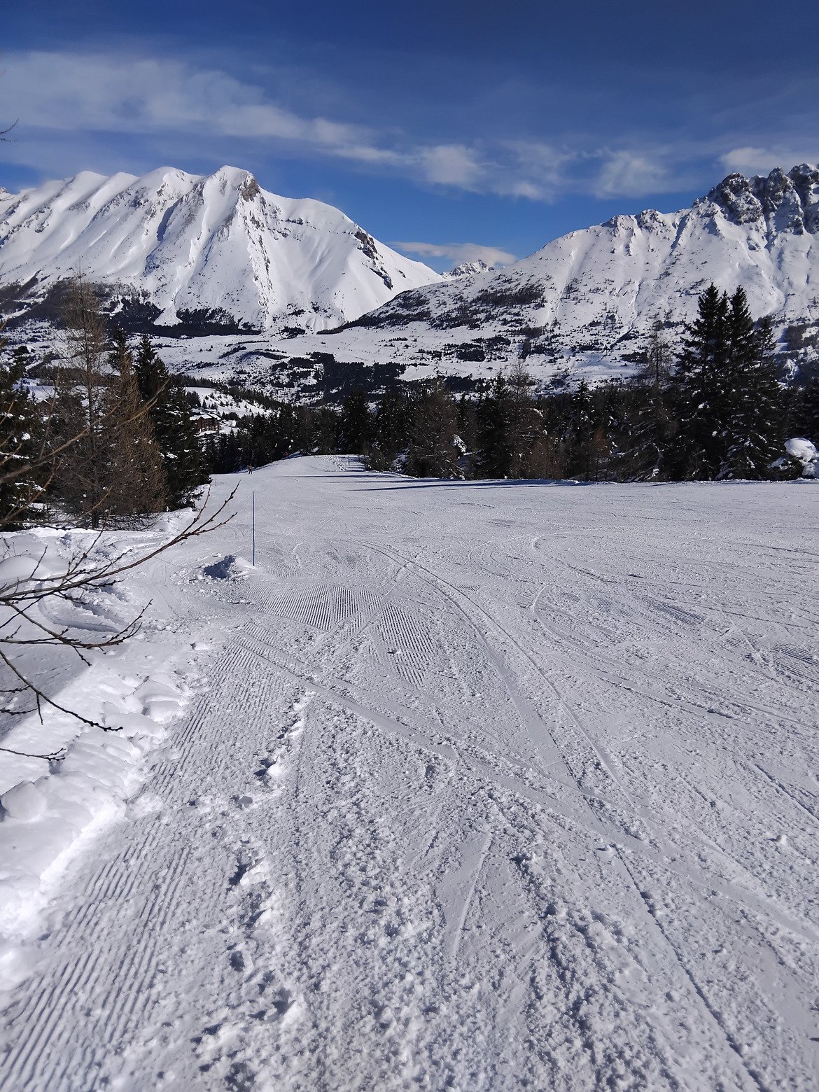 pas trop de monde sur les pistes...même sur les pistes principales ..et carrément personnes aux meules , plattes du pin ..par exemple ,un regal,,,Quand tout est ouvert forcement cela facilite la chose😉
