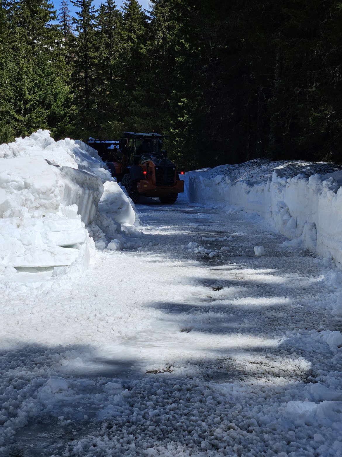 🚗 Nous sommes 5 dans la voiture, garée à 800m du Poursolet. On chausse direct les skis ; la route est enneigée. Aucun portage aujourd'hui. Au retour, on trouve la déneigeuse qui travaille (un dimanche ?!) pour aller jusqu'au hameau.