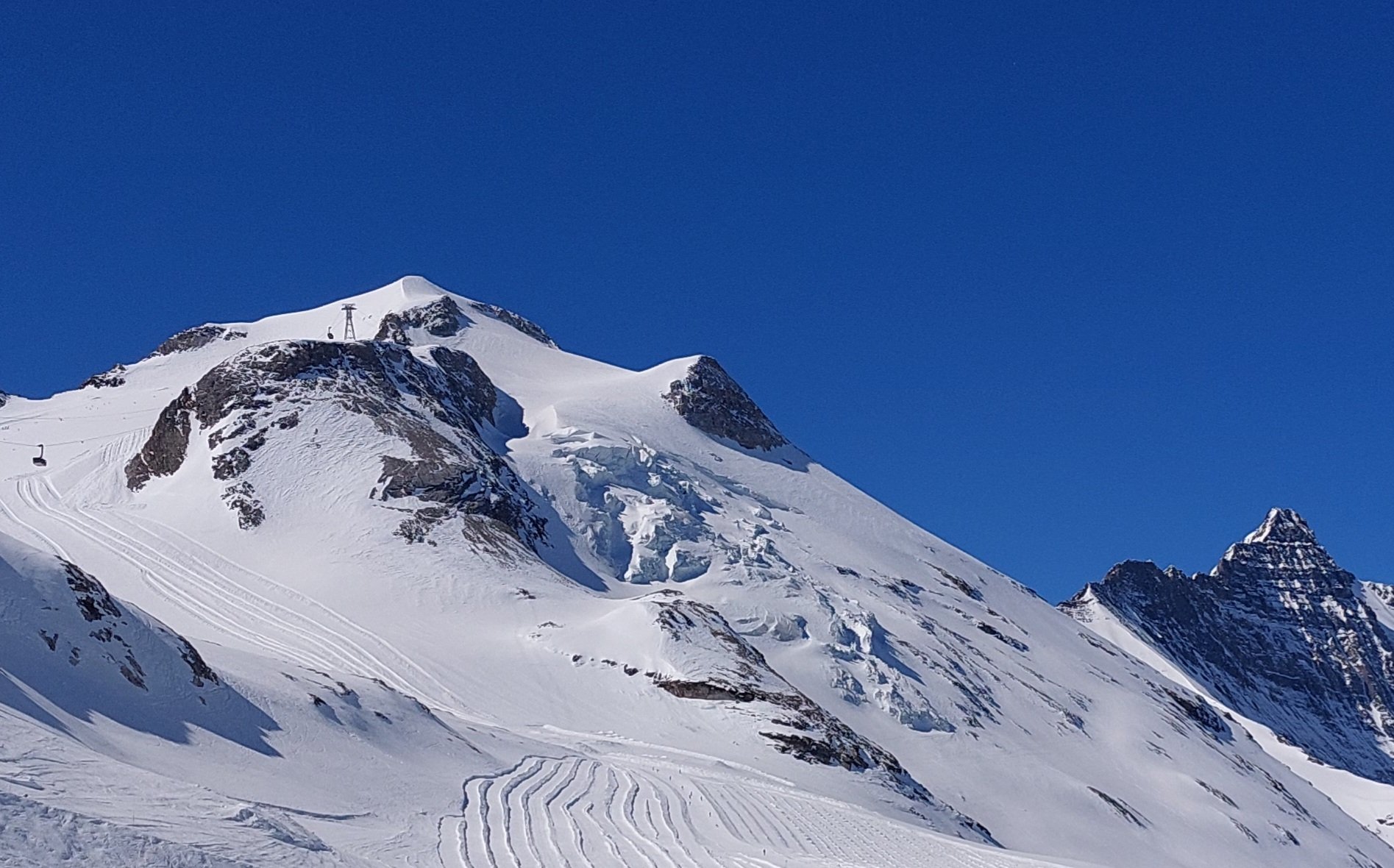 Pas de ski de rando aujourd'hui, très peu de regel aussi, en SE ça décaille très très rapidement. Sur le glacier de Grande Motte, la neige reste bonne, et y'a moyen de tirer des grandes courbes à Mac Balle, surtout qu'il n'y a pas foule, ça laisse de la place 👍😇