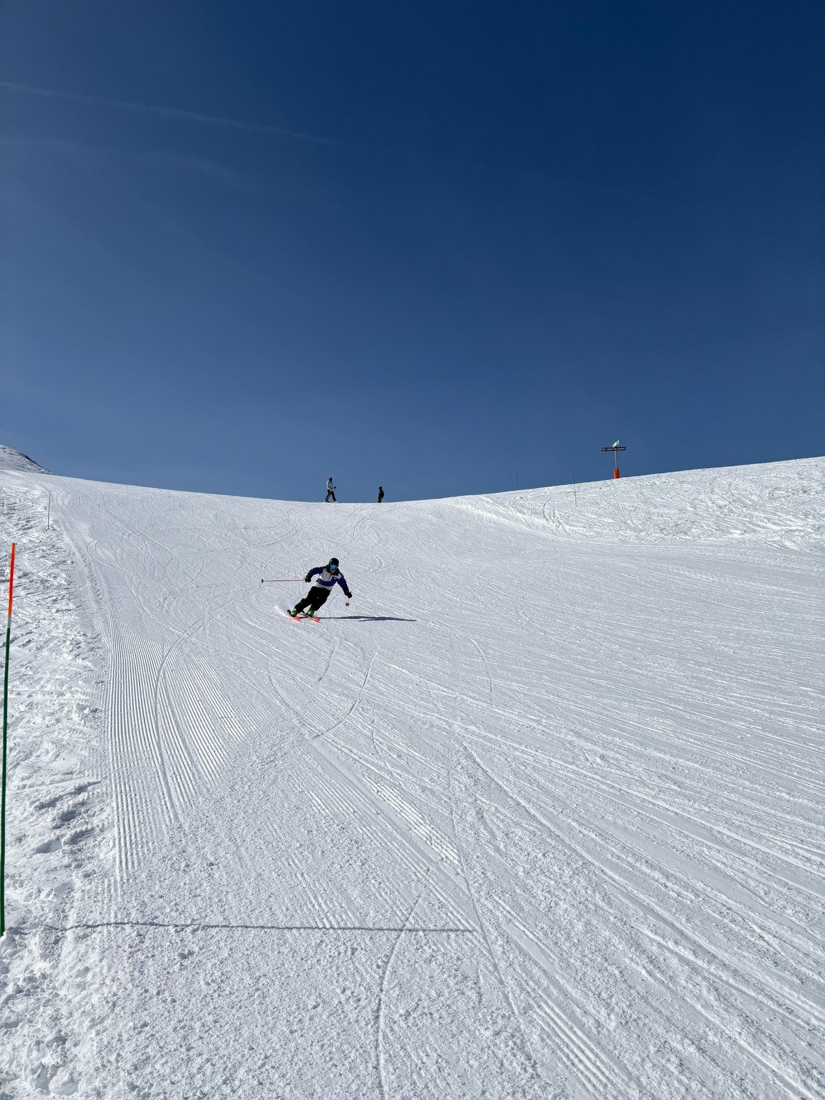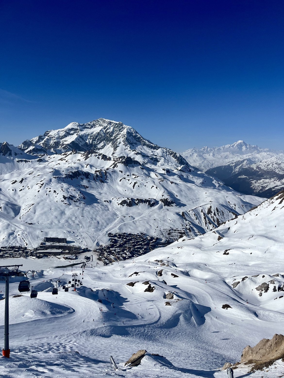 Puis nous continuons jusqu’au col de l’Iseran pour nous rendre jusqu’au bout du secteur, aux Pioches des Montet, cela faisait un bon moment que je n’en avais pas vu en France. Après une pause bien méritée, nous décidons de revenir en skiant d’autres pistes comme, par exemple, la piste Rhône-Alpes, qui était vraiment incroyable. Nous basculons ensuite en direction de la Folie Douce pour regarder de loin l’ambiance (perso en station je préfère skier), puis prendre la piste noir Combe folle / Johan Clarey, qui était encore incroyable, pour remonter en direction de l’Aiguille Percée. À chaque fois que je la vois, je me demande comment Candide a réussi à sauter à travers.