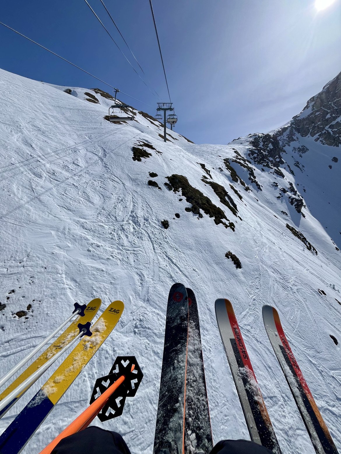 Cette journée était également l’inauguration de mes nouveaux skis, les Blizzard Canvas 100, fraîchement reçus de la part de Skipass. J’ai à peine eu le temps de les déposer au magasin pour faire monter les fixations et de les récupérer la veille pour ce premier essai.
