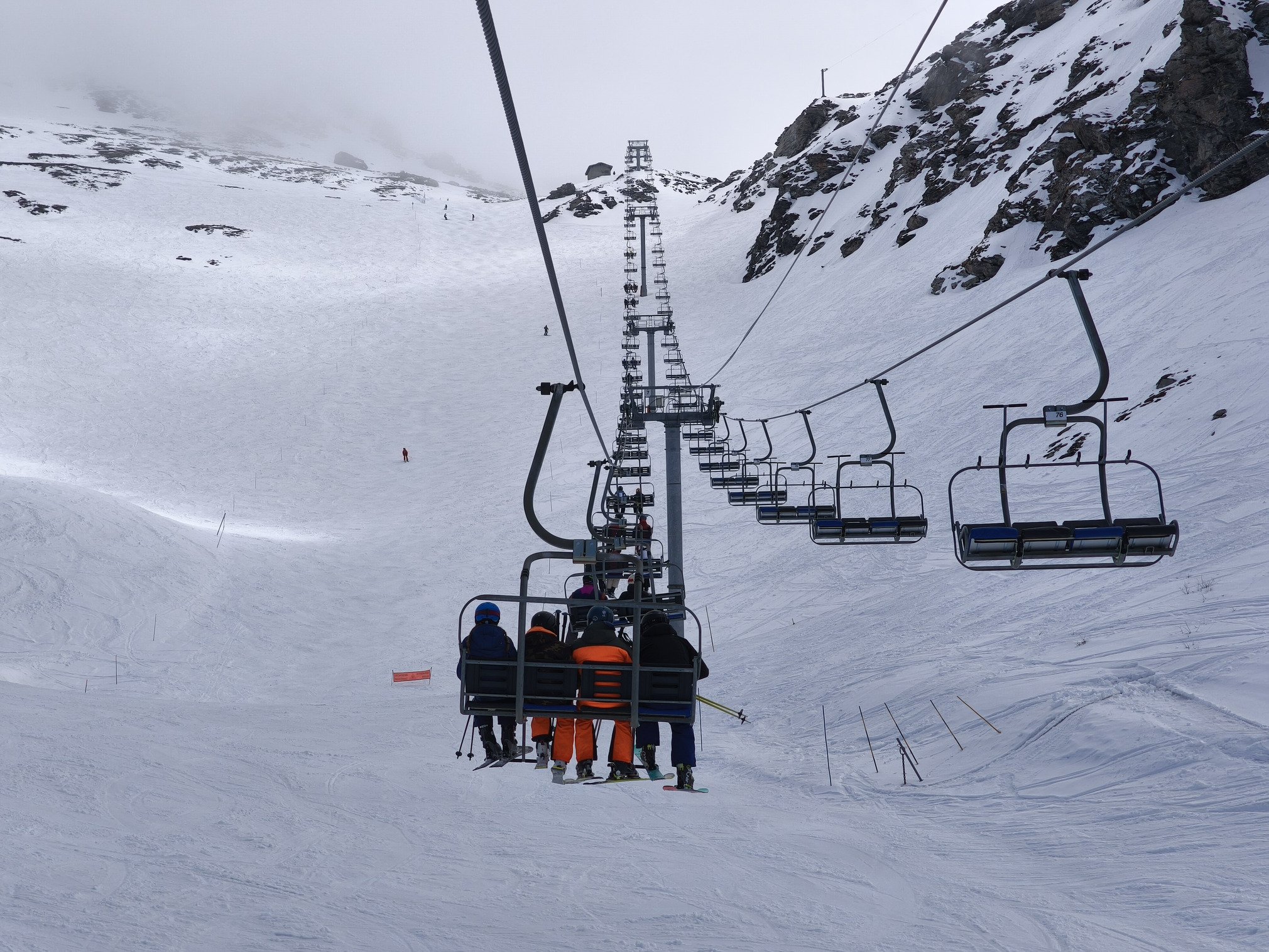 Une belle journée de ski avec encore pas mal de monde sur les pistes de Val Cenis pour en profiter. Beaucoup de remontées mécaniques sont à présent fermées et les skieurs se concentrent principalement dans le secteur desservi par la Télécabine du Vieux Moulin et le Télésiège Solert.