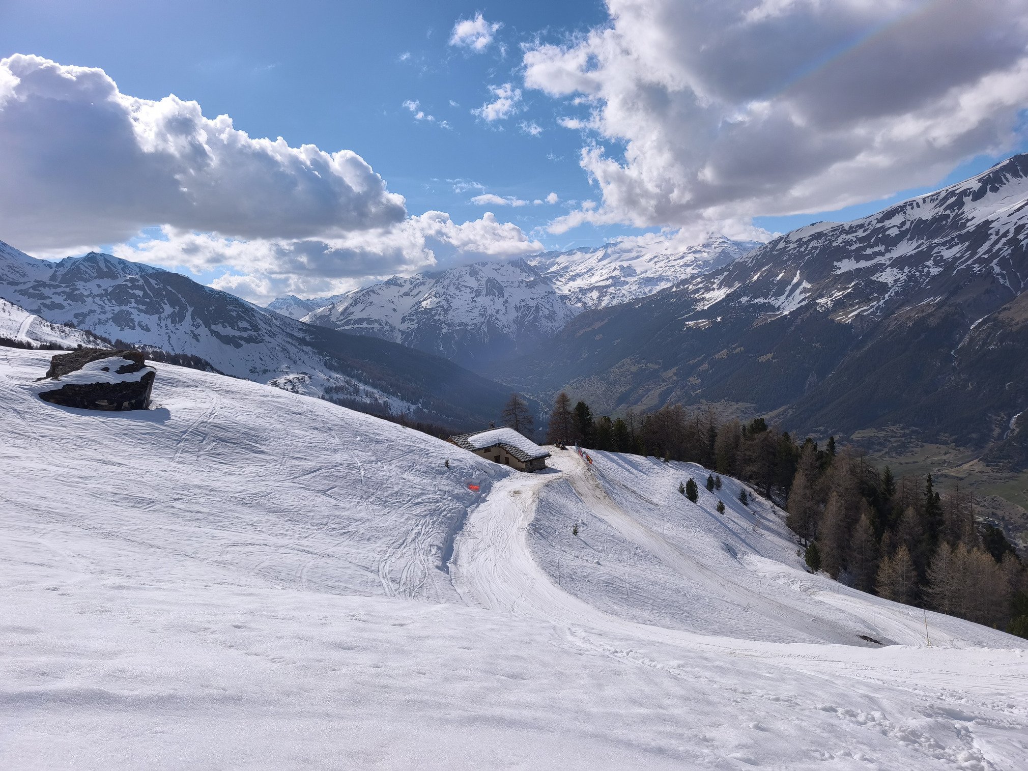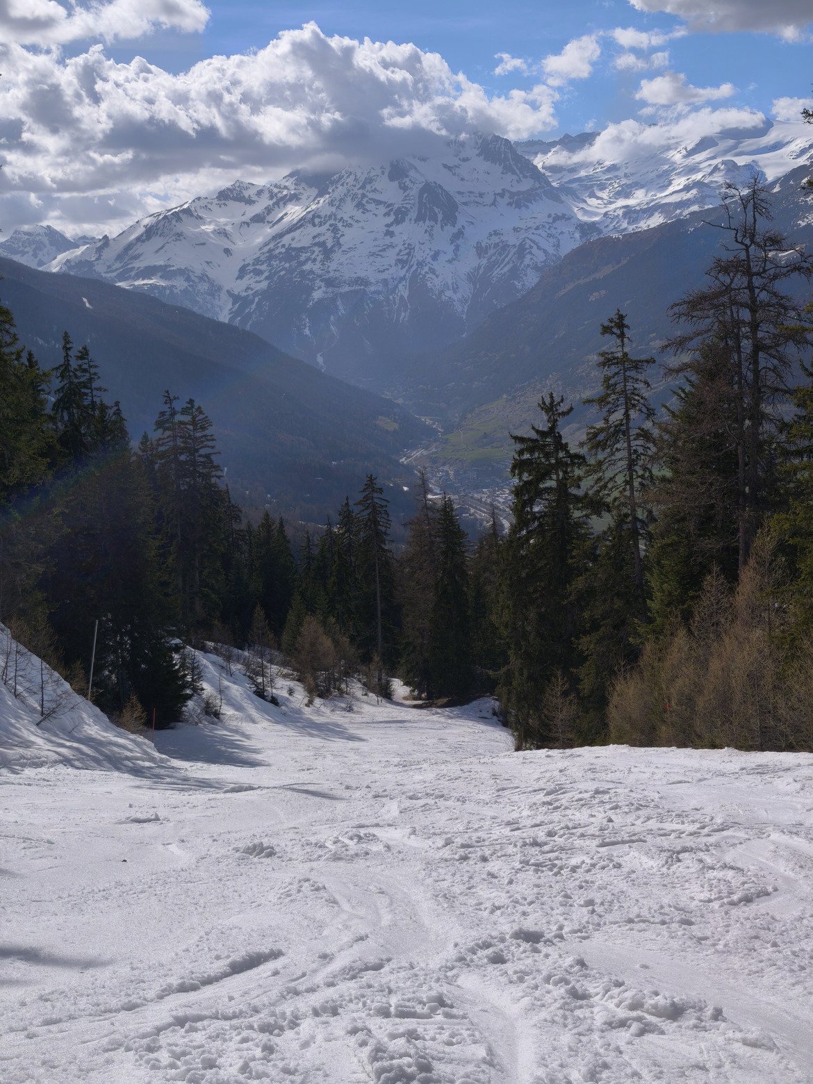 Côté neige le petit retour d'Est n'aura pas été très généreux : + 4-5 cm de neige tombés à 2800 mètres le 14 avril. Le regel nocturne a été bon. La neige est dure à l'ouverture mais pas pour longtemps. Elle transforme rapidement et s'alourdit à toutes les altitudes sans pour autant devenir collante. La neige s'est très bien conservée toute la journée sur la noire Jacot Met avec de jolies bosses. De même la piste rouge Tomba est excellente en début d'après-midi tout comme Bec Rouge.